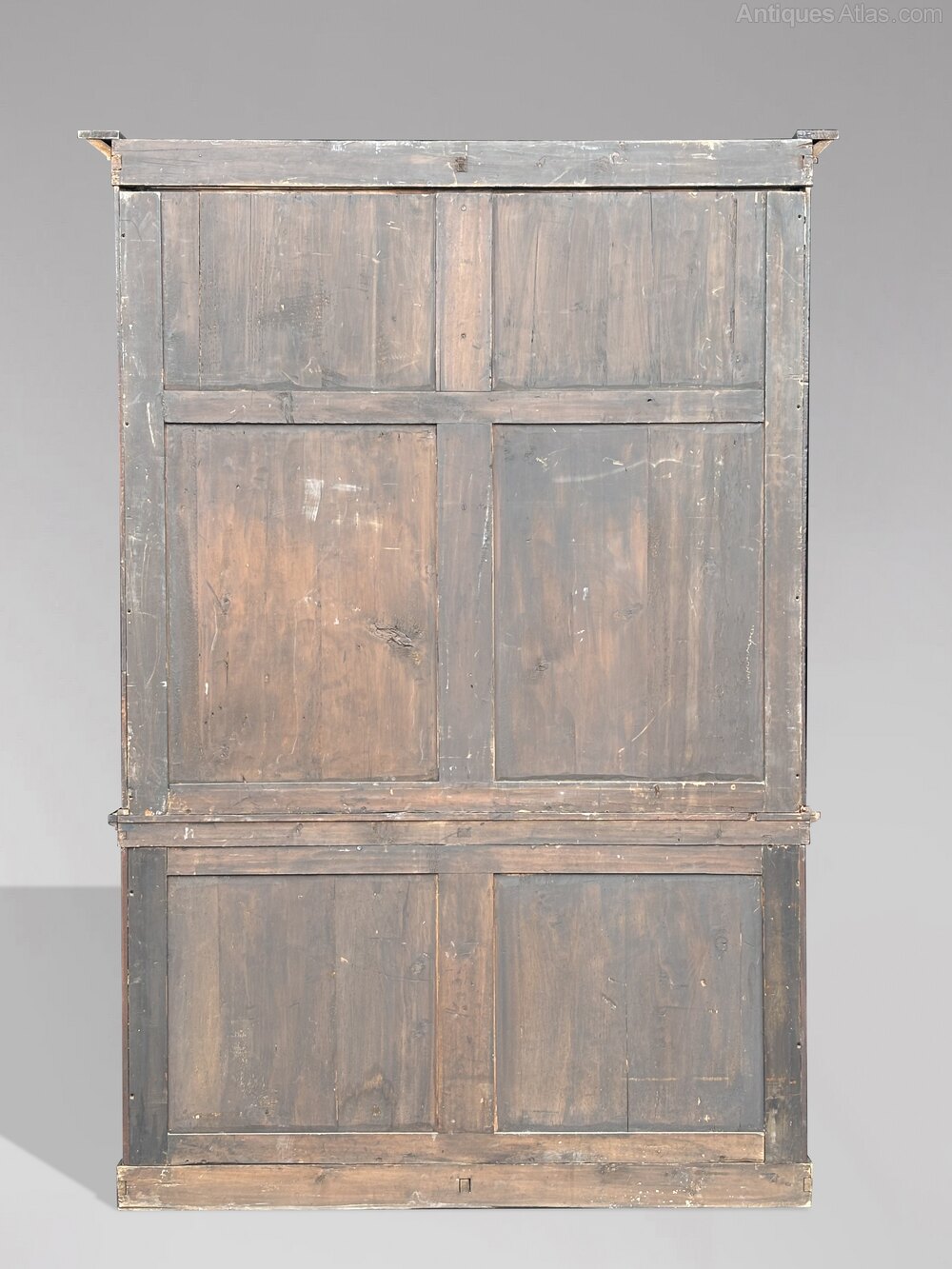 The bookcase is constructed in separate elements – including the moulded cornice, top, lower section, and plinth – allowing it to be taken apart for easier access through properties where space or access may be restricted.