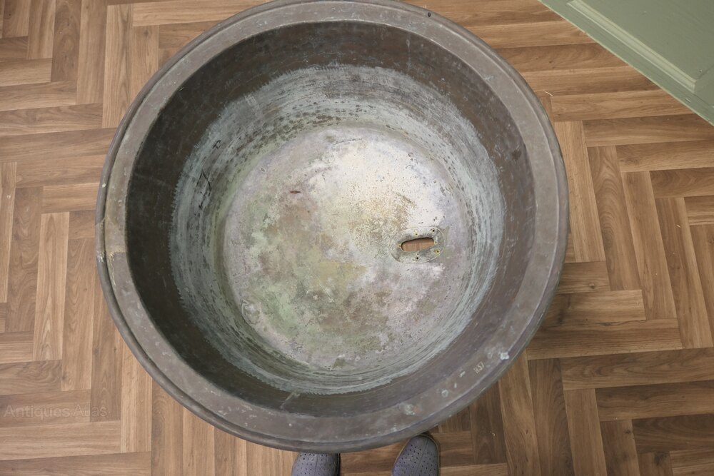 An 19th Century Antique Copper, a large piece with with the remains of the drain hole at the bottom, once used to heat the water and would make an excellent Log Bin or Planter