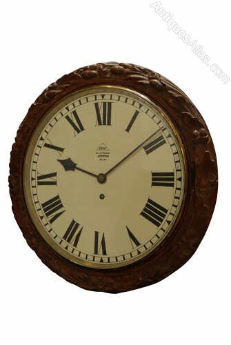 A good quality 19th century chain fusee eight-day circular wall timepiece by Dent of London, circa 1860, housed in its original carved oak leaf and acorn case.