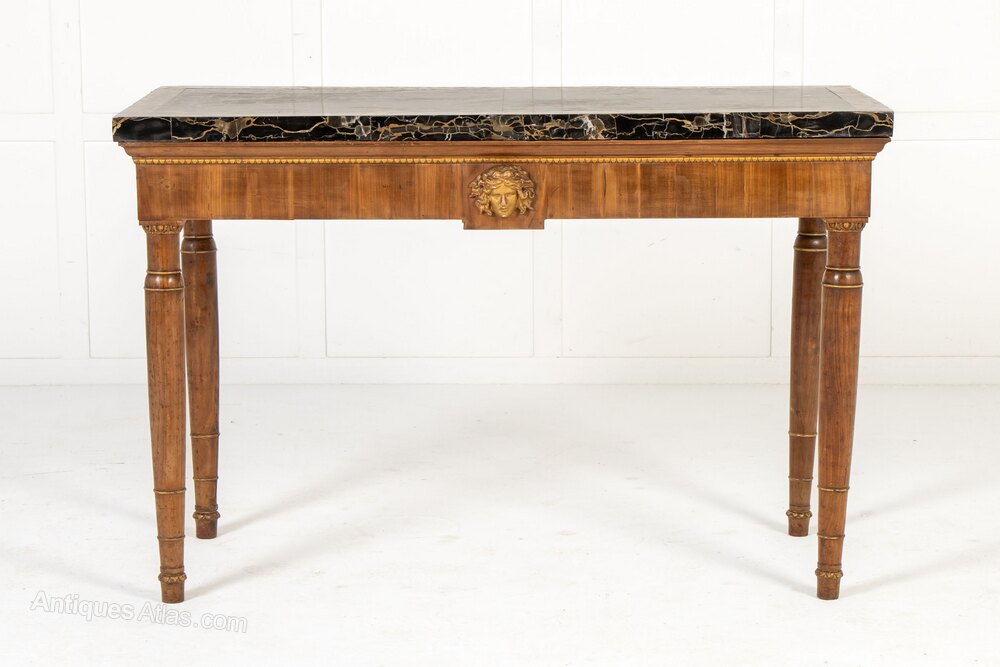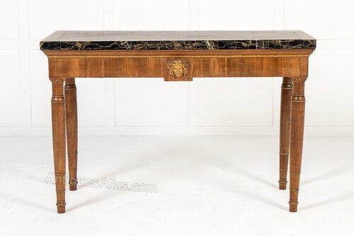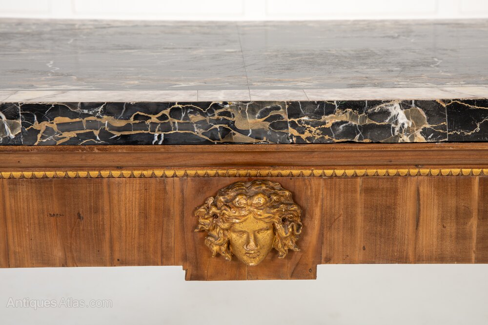 An Early 19th Century Italian Walnut Console Table with Marble Top.