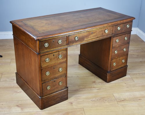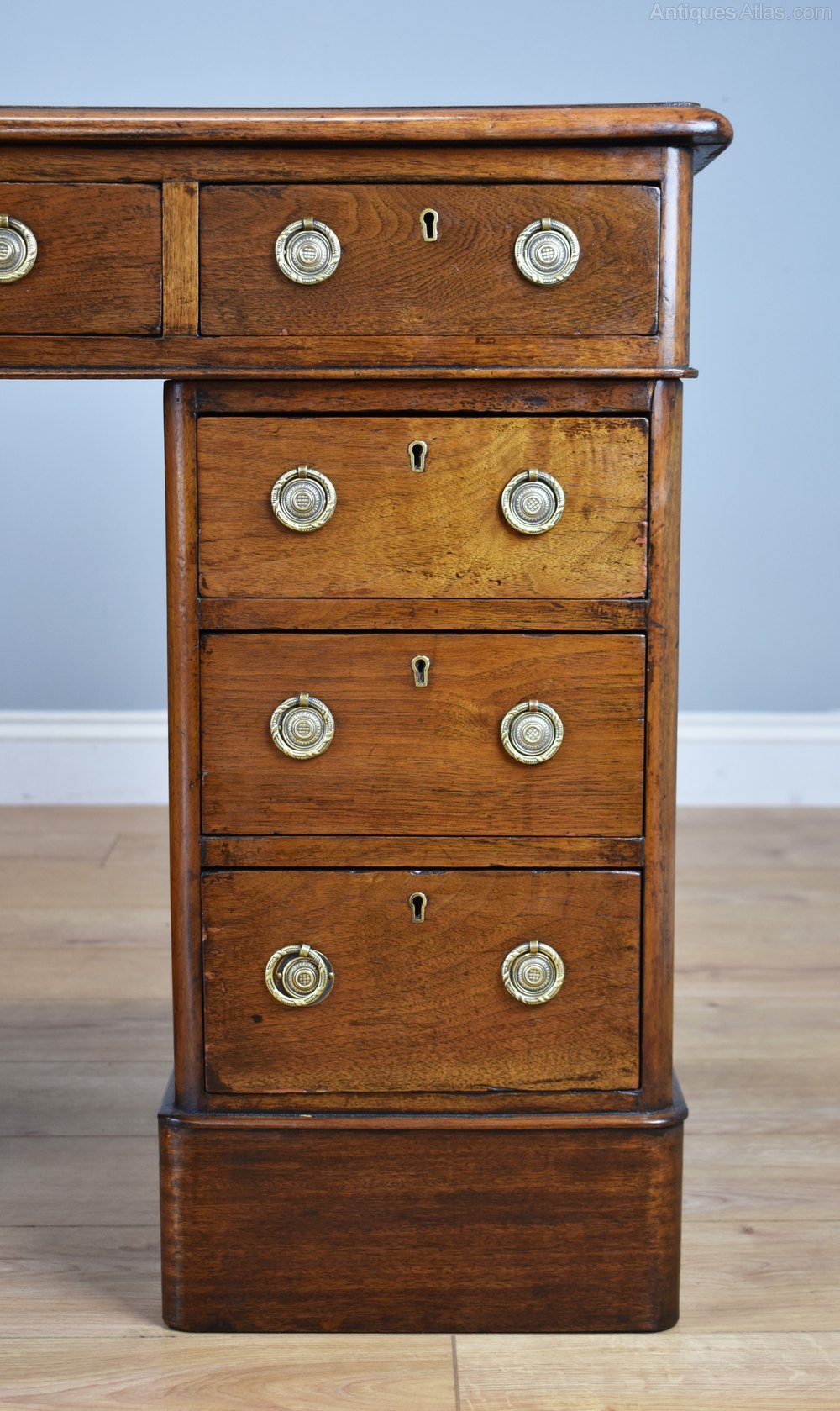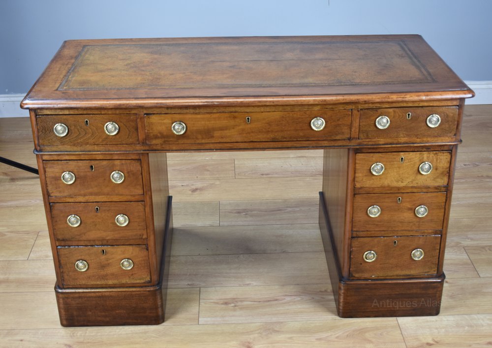 Antique Victorian Walnut Leather Top Pedestal Desk