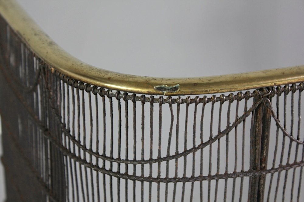 Early 19th iron and brass Nursery Fire Guard. The D-shaped iron frame is infilled with fine wirework including a simple swagged decoration in the top section of the guard. The top rail is trimmed with brass. This antique fire guard is in wonderful condition, with only one very small hole in the brass trim. Circa 1820.