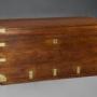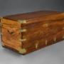 This camphor wood trunk consists of brass trim, with lock (and key), brass escutcheon plate, and carrying handles to either side.