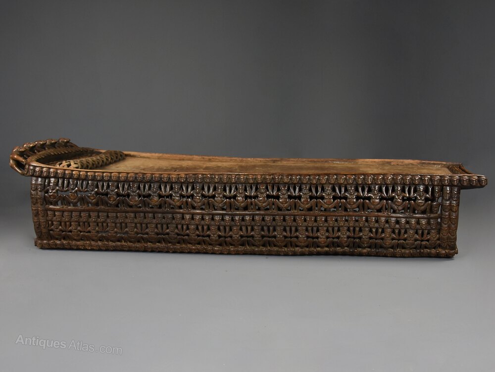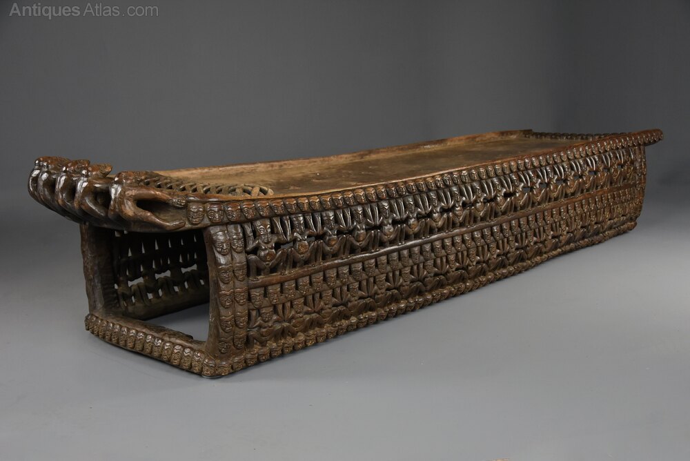This highly decorative ceremonial bed is in very good condition for age, is of stable construction and can go straight into a home – it would be a wonderful standalone piece of art, a statement piece or ideal as a large sculptural coffee table.