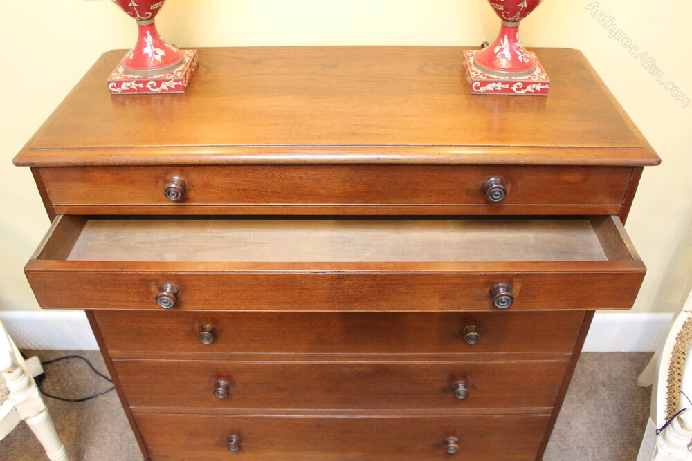 19thc. Red Walnut/Fruitwood “Collector’s” Chest of Drawers