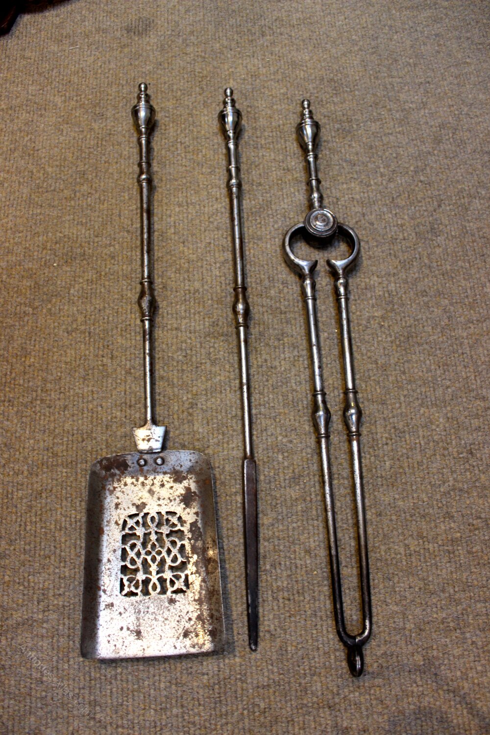 Comprising tongs, shovel & fire poker.