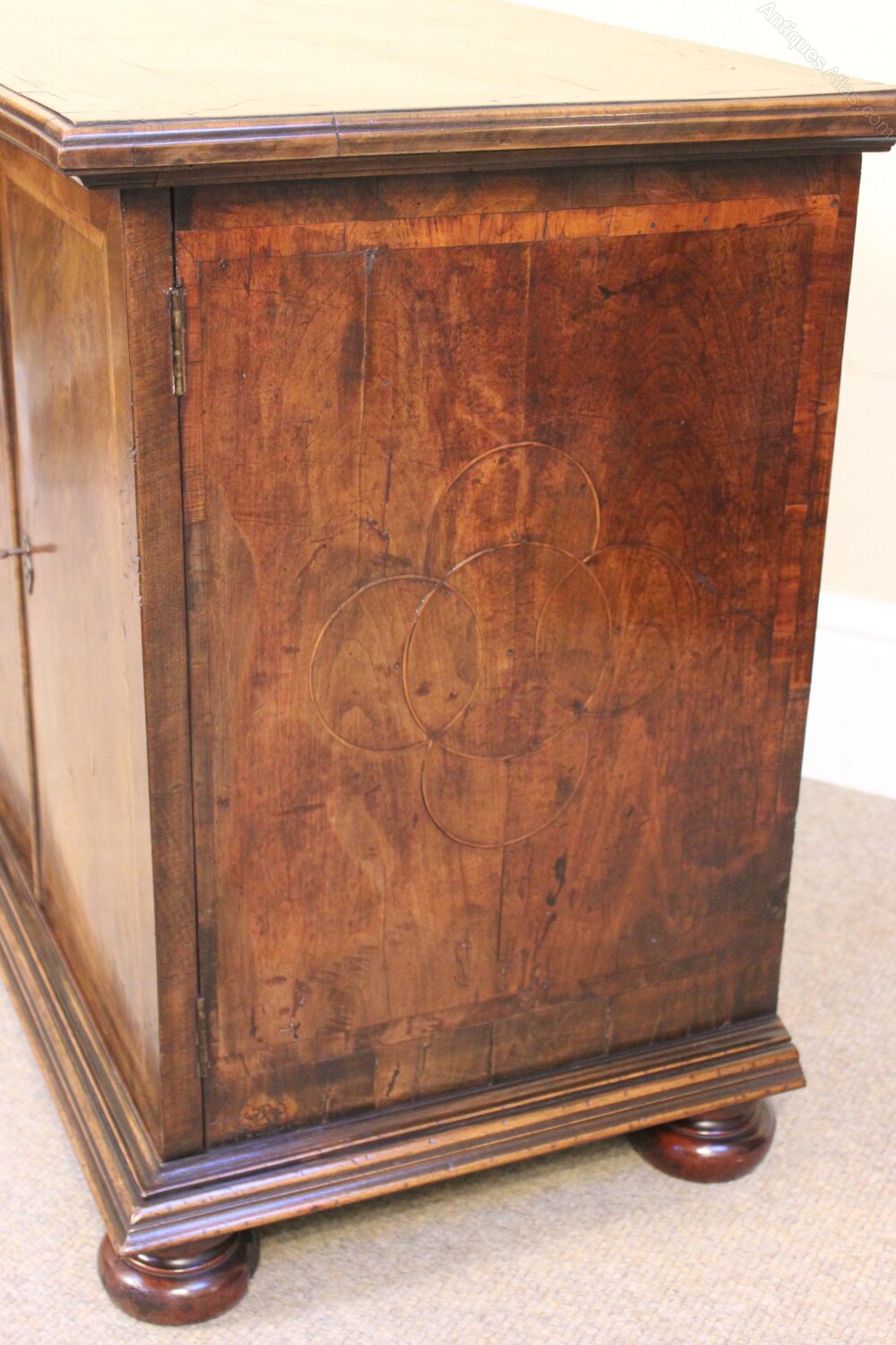 and below on bun feet. Cross banded in