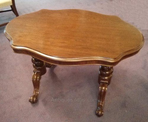 This walnut occasional table from the reign of Queen Victoria is in a lovely condition. Restored in our workshops after over ten years in storage it is a handsome looking item. A good rich red walnut with twin pedestals and a super shaped top it is an unusual size. It would make a great centre table in a sitting room or hall, but can be equally at home in almost any location.