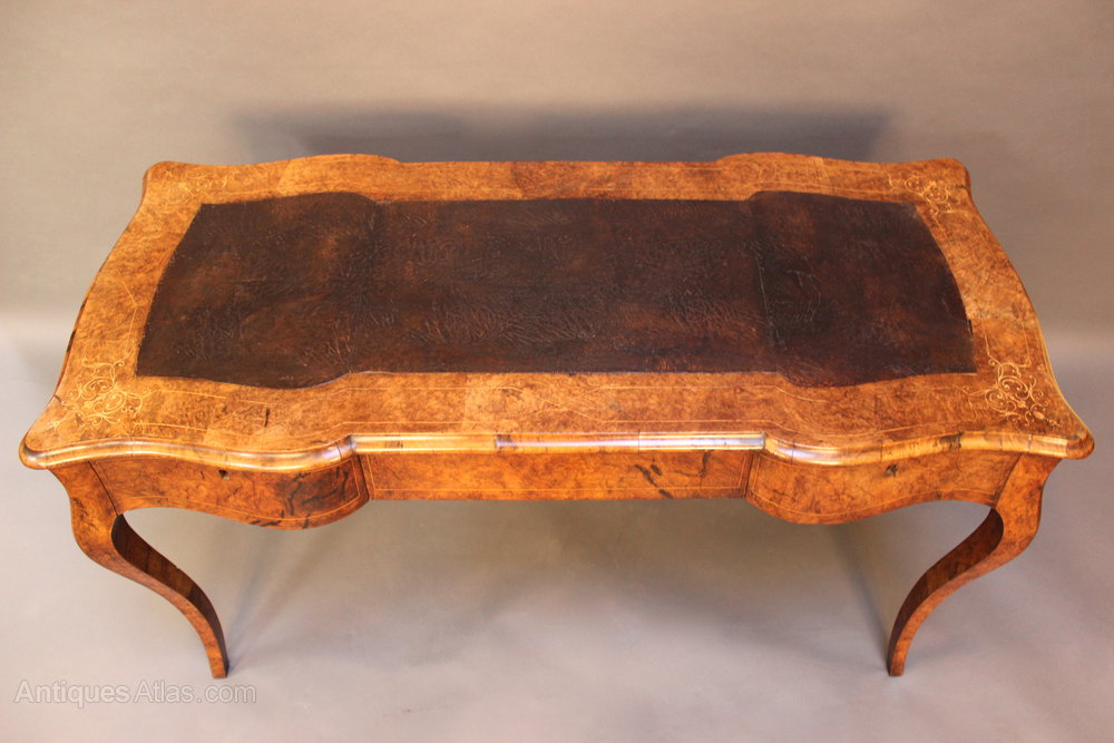Antique Edwardian Inlaid Walnut Writing Table