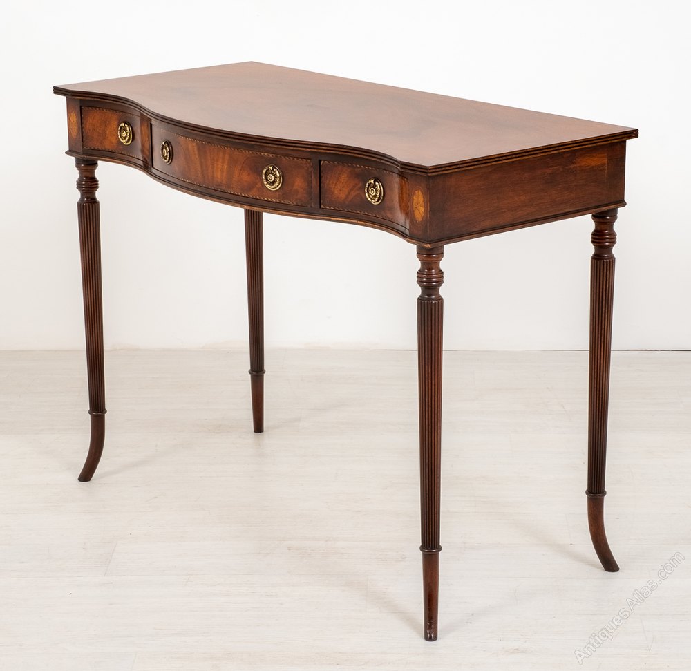 3 drawer mahogany Serpentine Side Table.