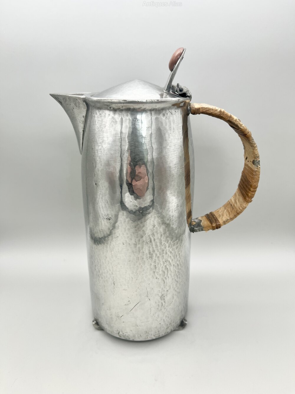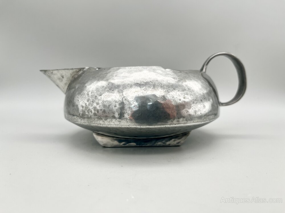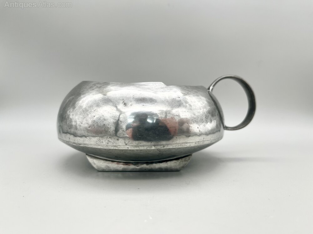 The pieces were designed by Archibald Knox for Liberty & Co around 1904/5 and bear the pattern no 0231. Earlier versions had a celtic motif around the bodies with these planished versions being produced from around 1910.