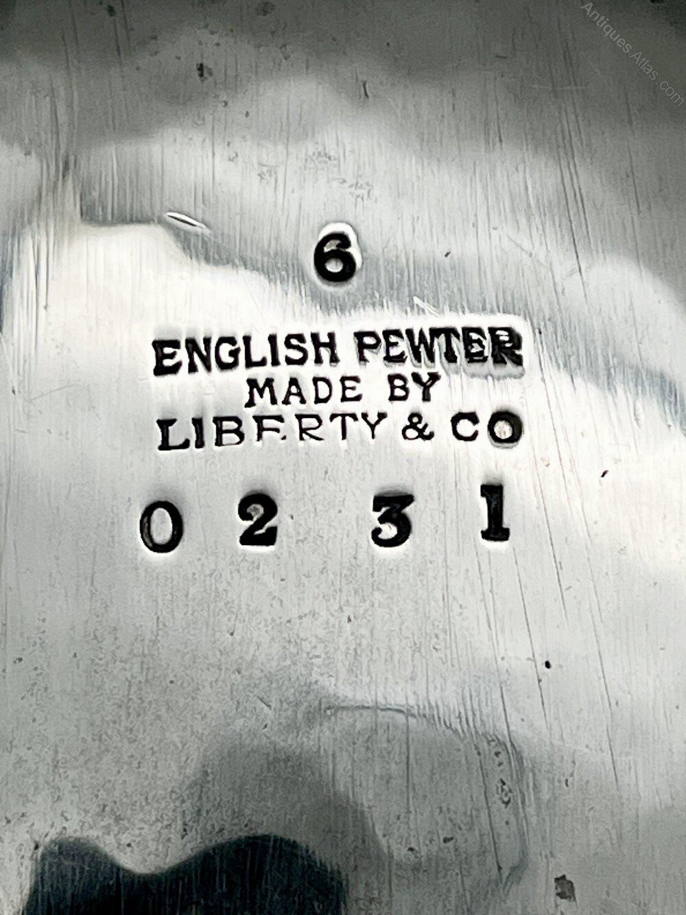 The underside of each piece is stamped ENGLISH PEWTER and MADE BY LIBERTY & CO together with the product number 0231.