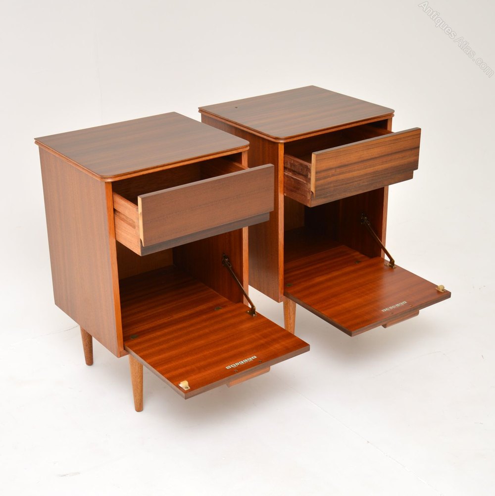 60's Pair of Walnut Bedside Cabinets by Uniflex