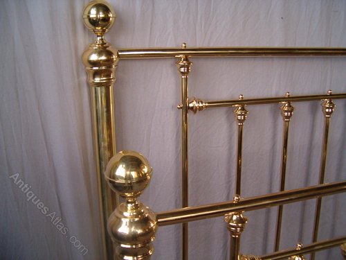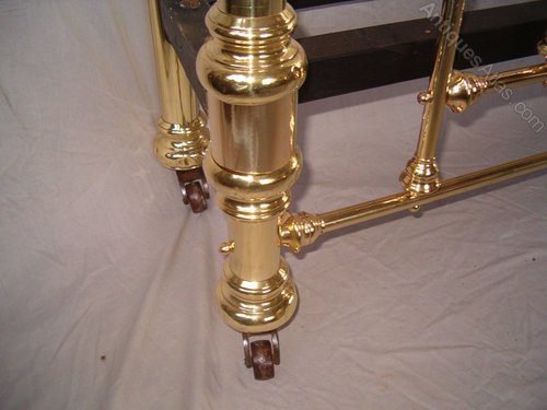 A lovely 6' brass bed with its original castors and iron side rails. The headboard is 56" (141cm) high and the footboard is 46" (115cm).
