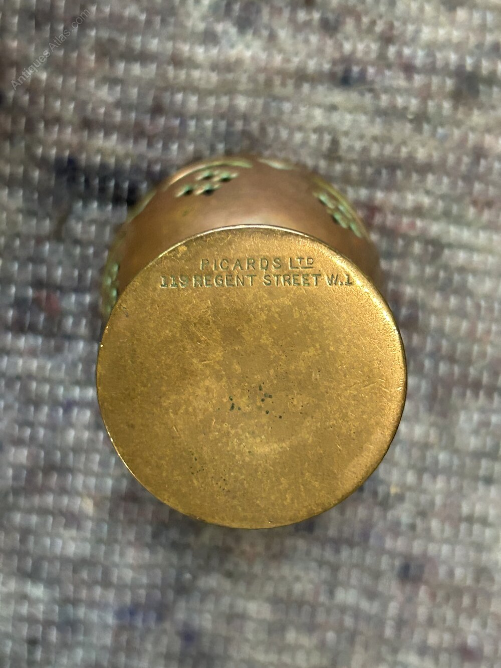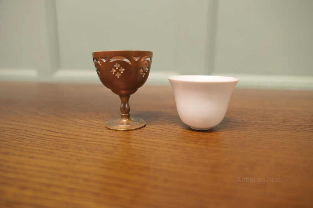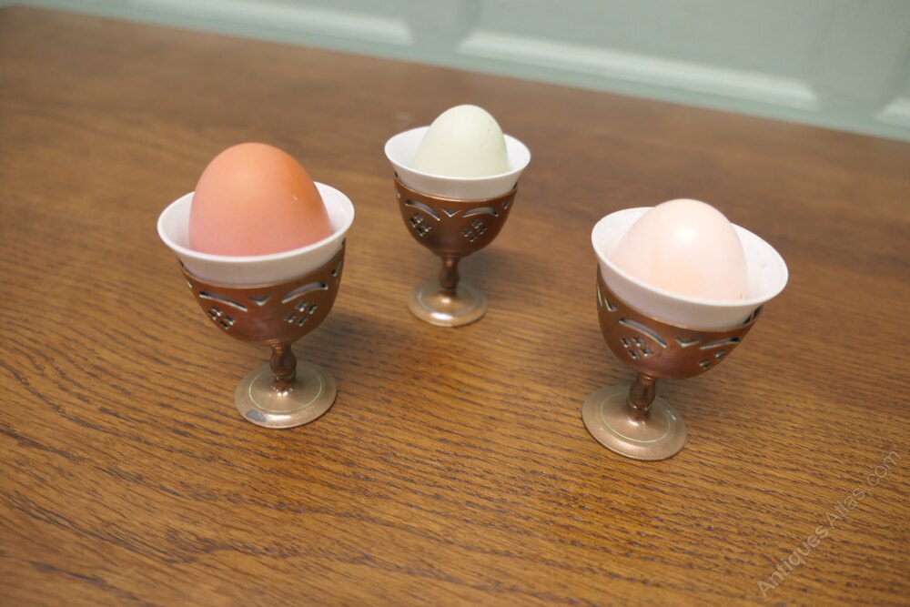 Hand Made Arts and Crafts Pierced Copper with ceramic lining Egg Cups Set by Picards Ltd