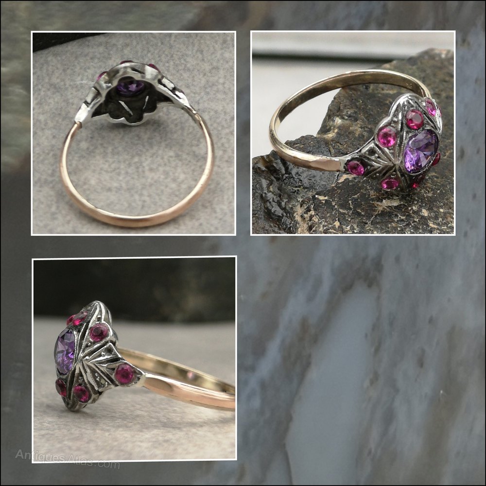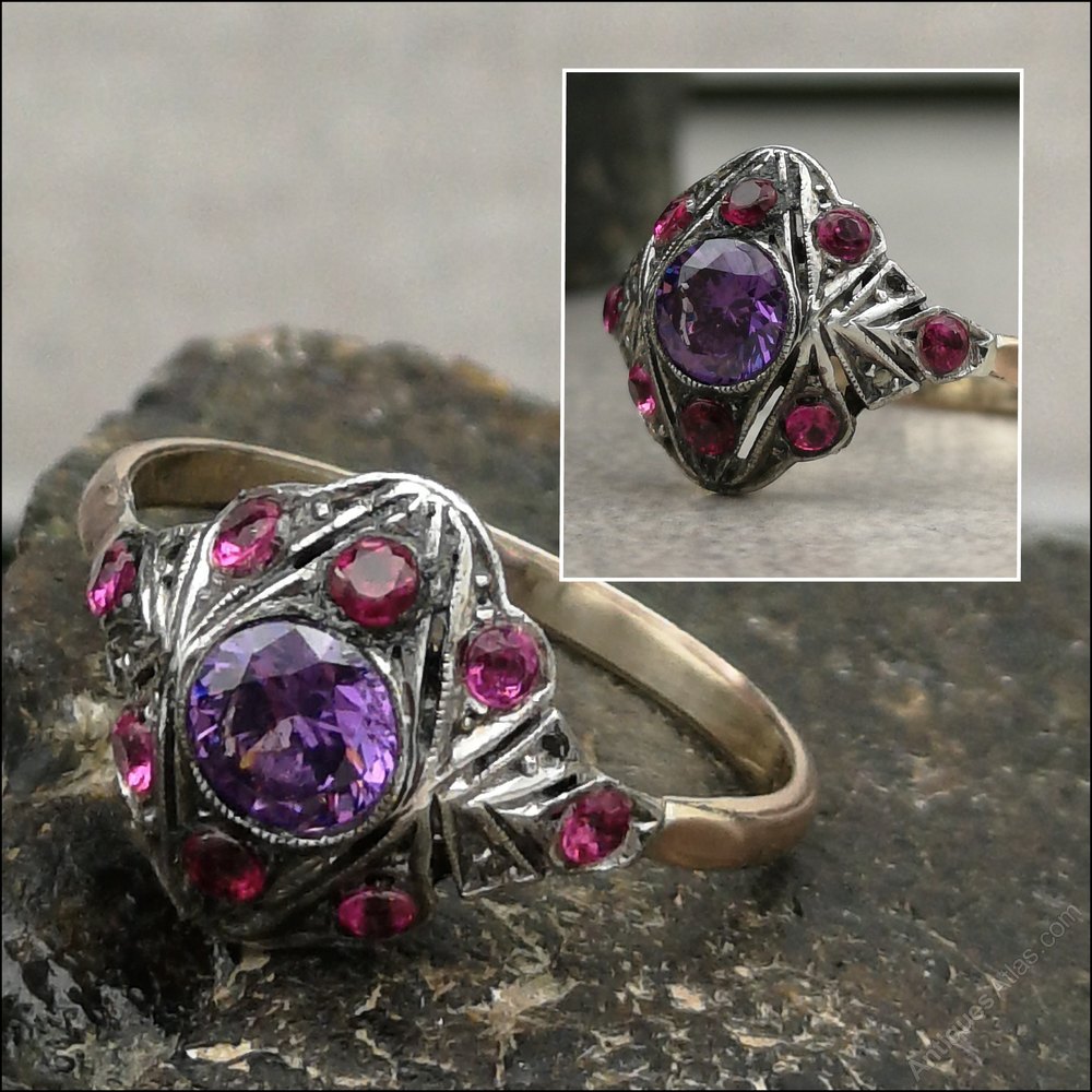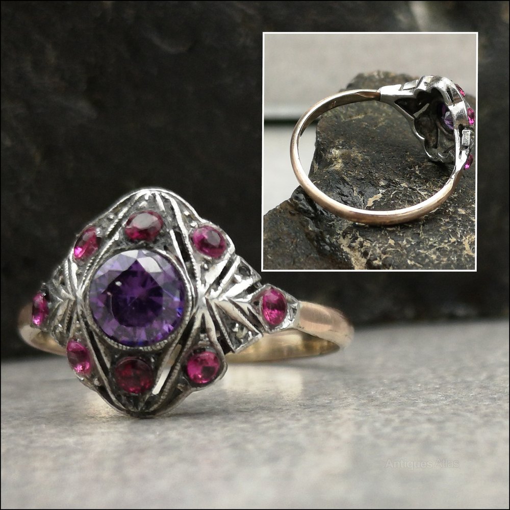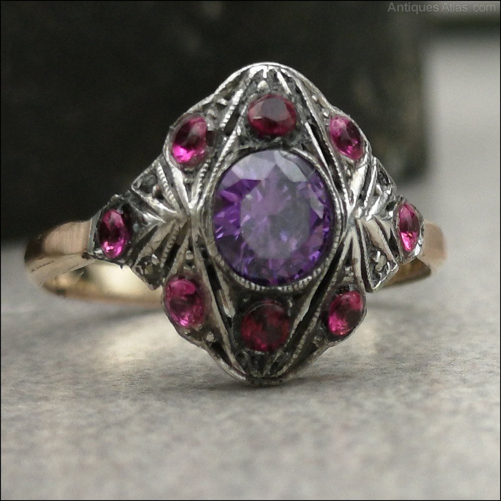 9ct Multi Gem Ruby and Amethyst Art Deco Ring