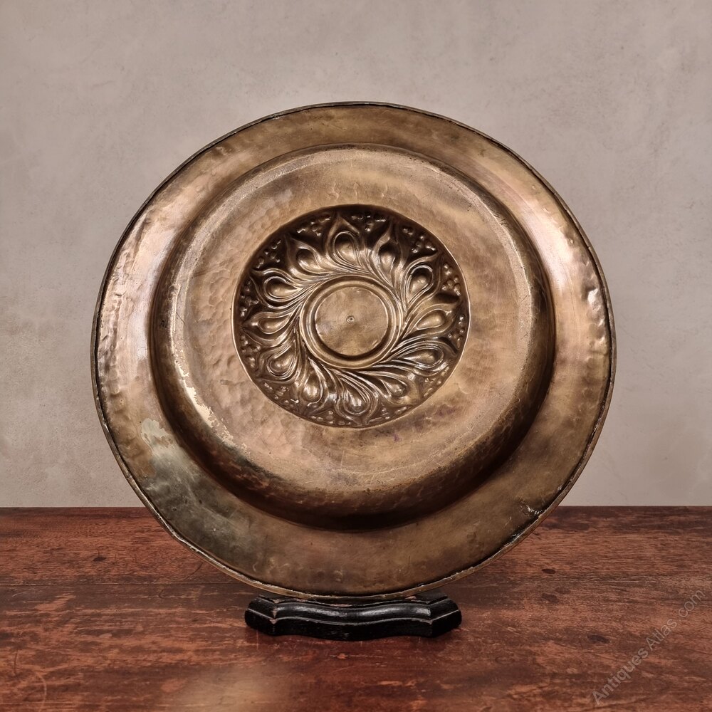 Large Vintage Relief Charger, Belgian, Hand Beaten