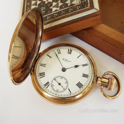 The watch itself measures 50mm diameter excluding the winding stem and the loop. The case is gold plated and there are a few fairly shallow small indentations. The winding crown pushes in to open the front cover.