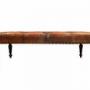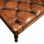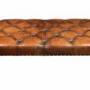 The top is upholstered in beautifully patinated deep-buttoned leather, showing the desirable cracking and mellow surface consistent with age and use. Brass stud edging adds a smart finishing detail, enhancing the country-house aesthetic.
