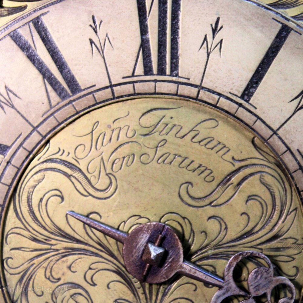 Samuel Tinham is recorded as working about c.1690. He married Mary Prater on 13th November 1704 at St. Edmund's church in Salisbury (which is still there). It seems that he was also buried there on 5th July 1721. Signed lantern and longcase clocks by him are known.