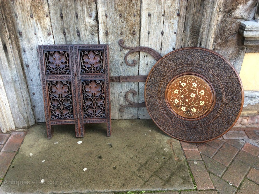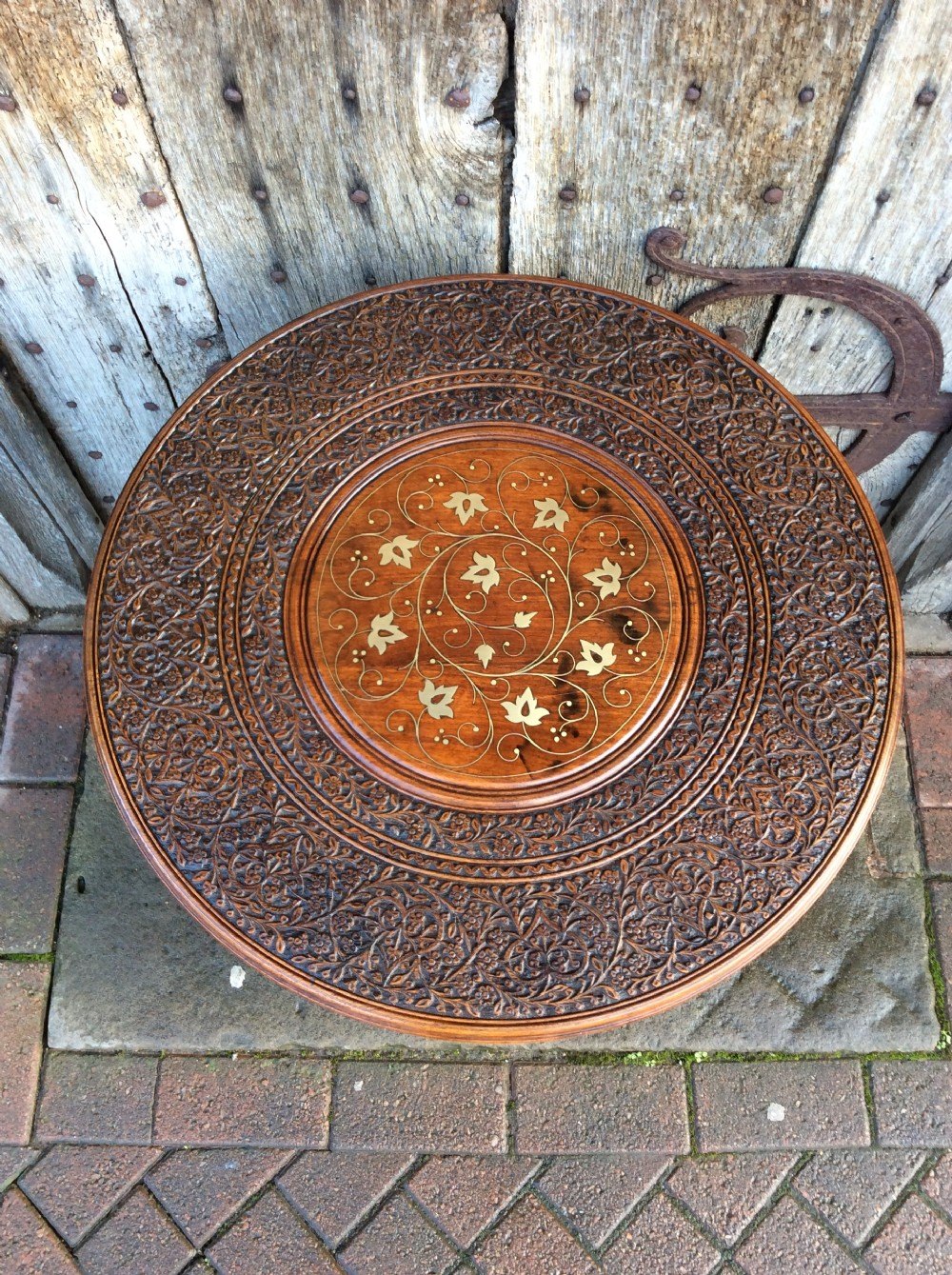 A brass inlay Moorish folding table.