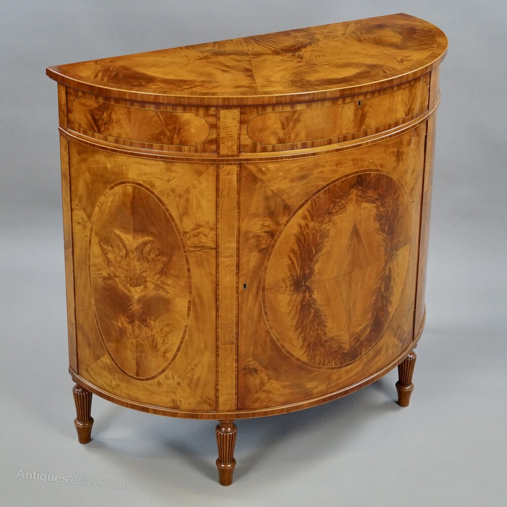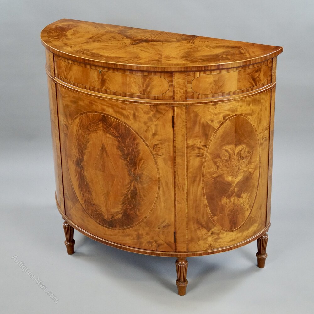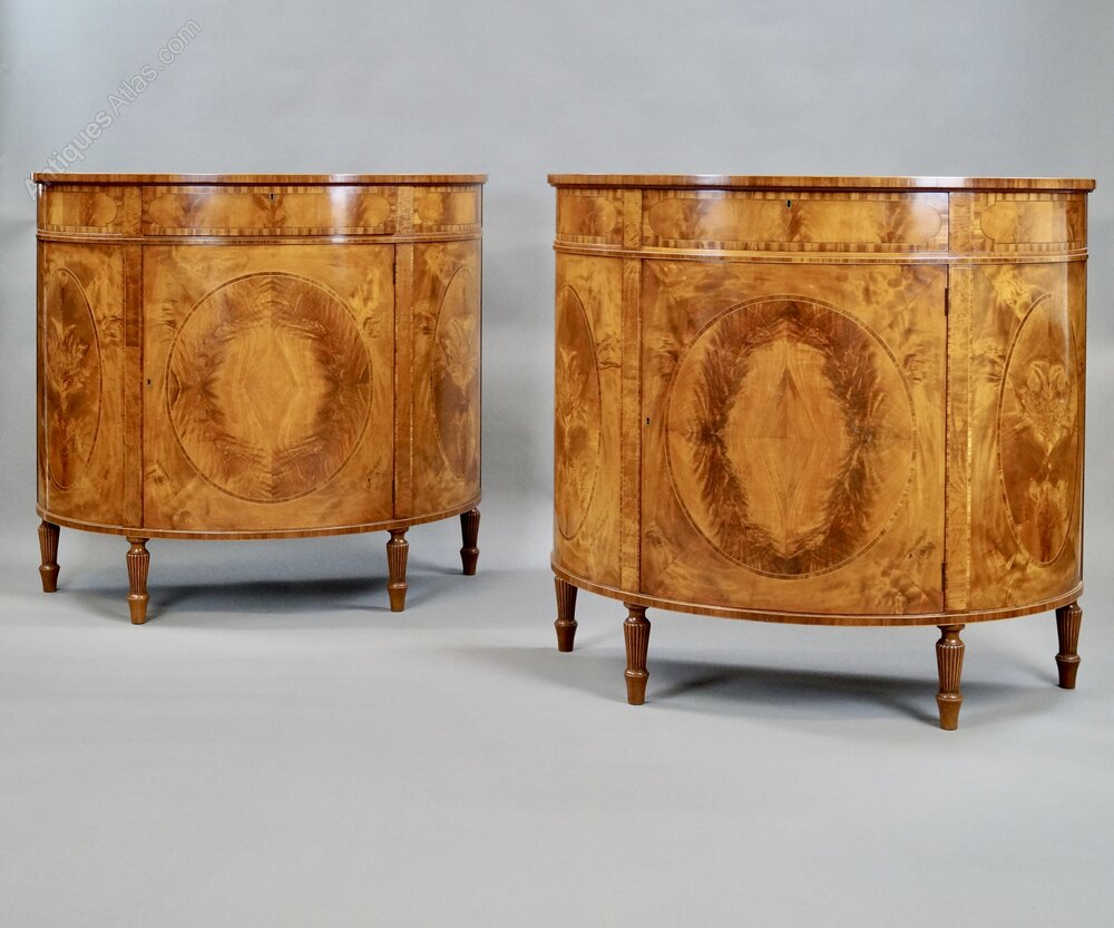 A Fine Pair Of Satinwood Demi Lune Commodes