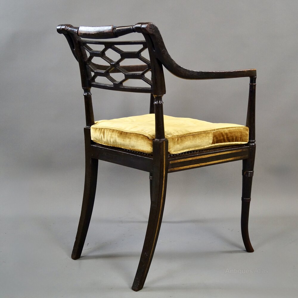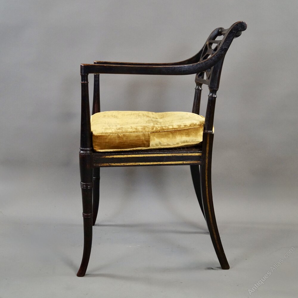 A Fine Regency Ebonised & Gilt Decorated Arm Chair
