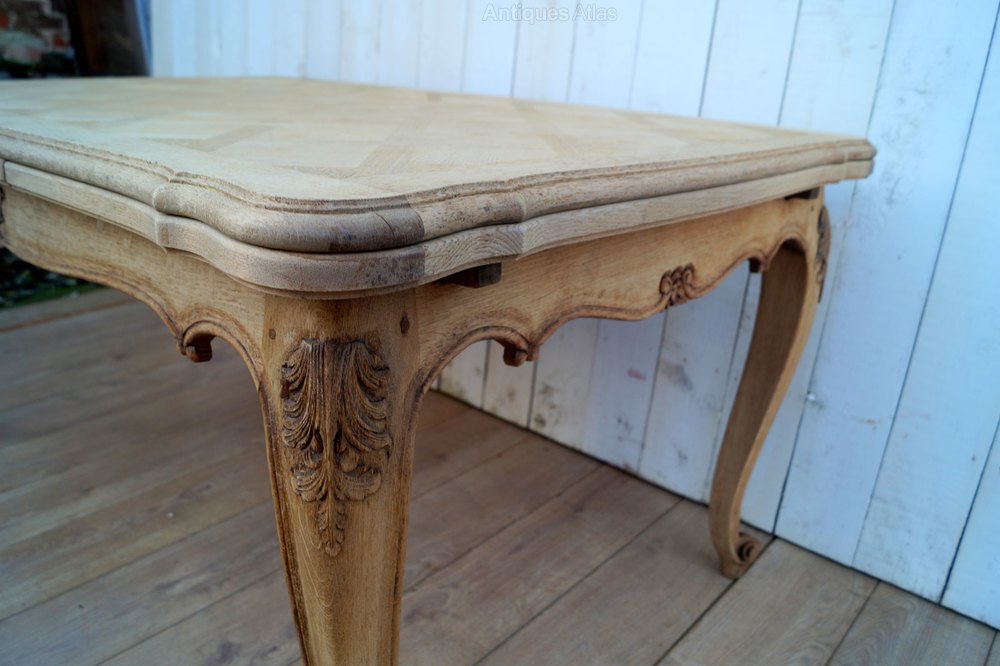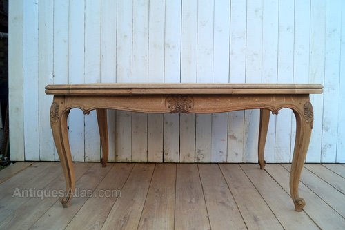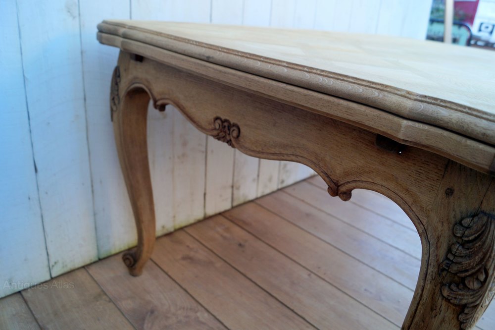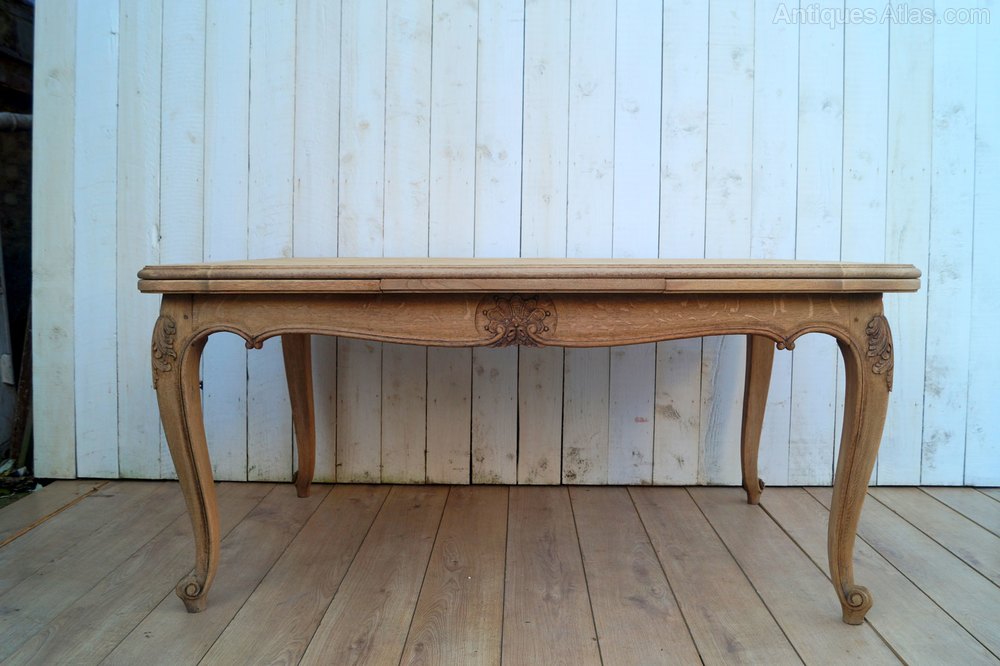A French mid-century oak draw leaf dining table.