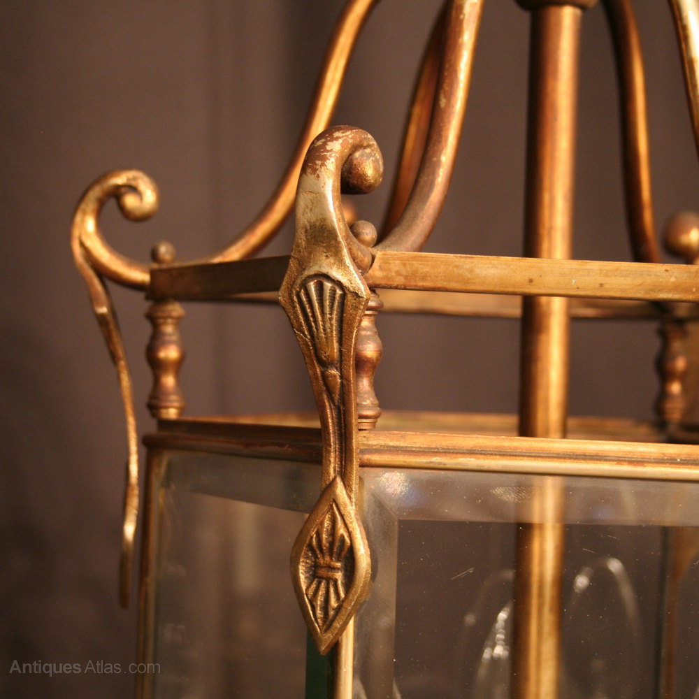 7 Art Deco Style Brass & Glass Hall Lanterns