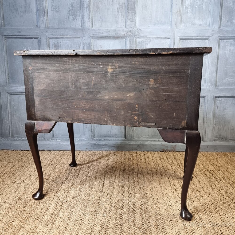 A George III mahogany side table, of good form with cabriole legs and three drawers with brass handles. The surface of the timber has a lovely deep rich patina, the sides have a couple of age related cracks in the timbers and there are a few fading marks to the top ,but generally the table is in very good condition for its age.