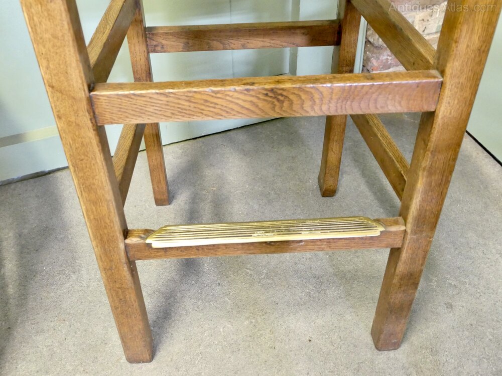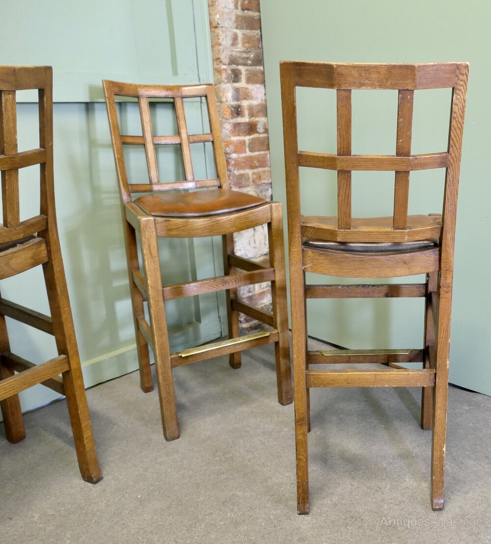 A Good Trio of Arts and Crafts High Bar Stools, in Leather and Golden Oak