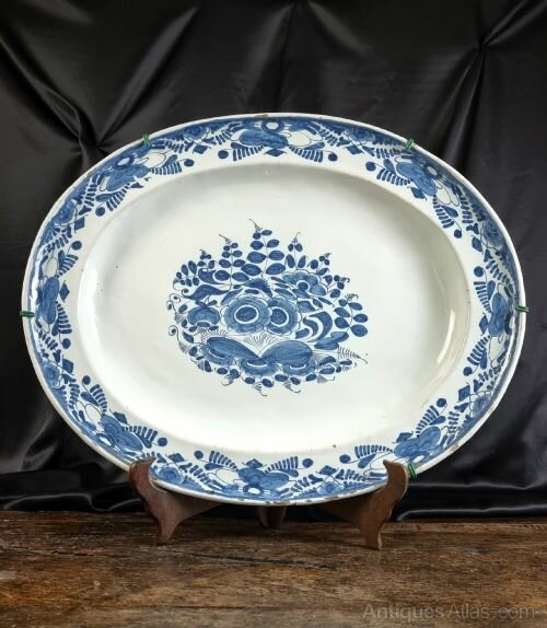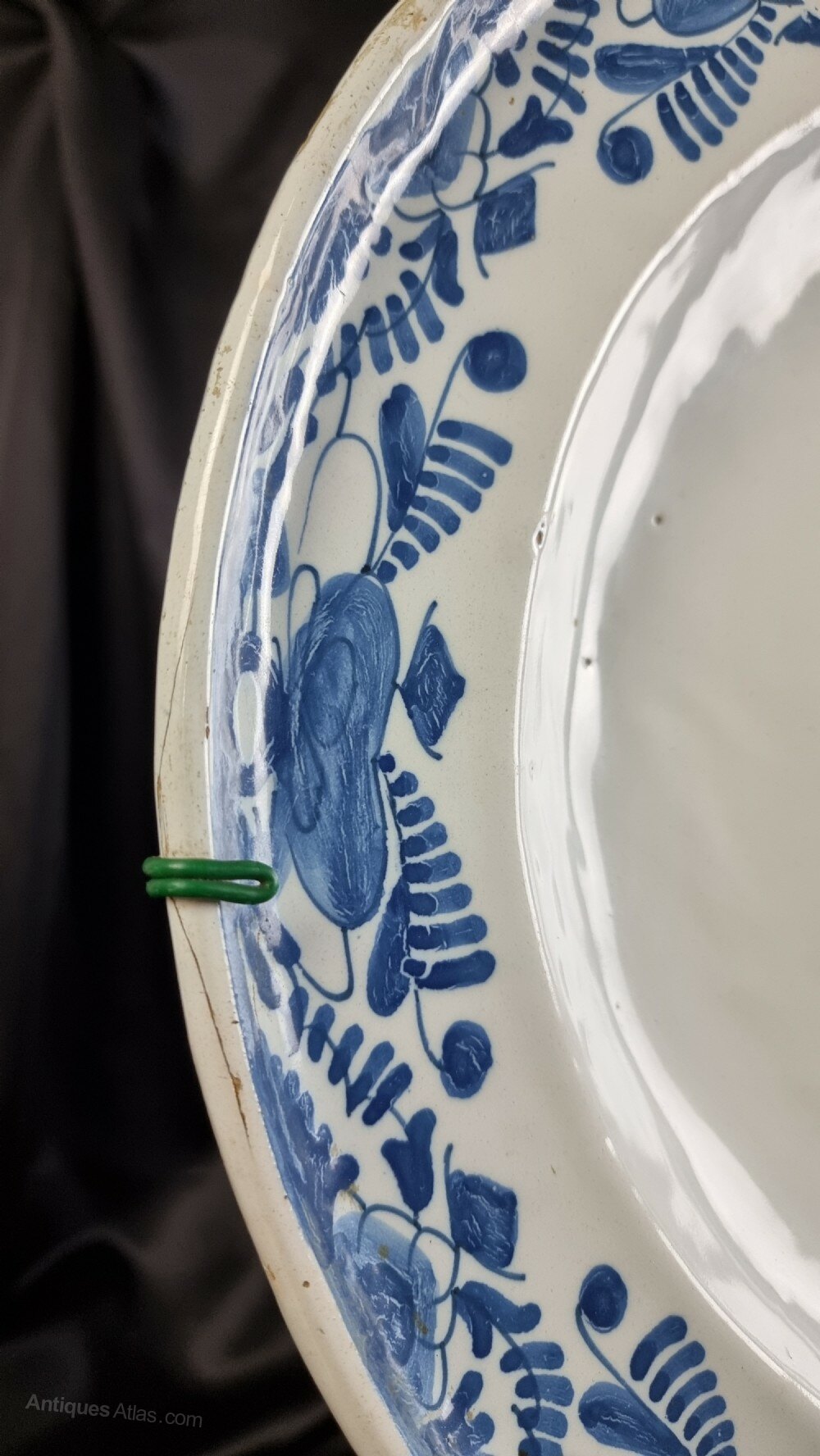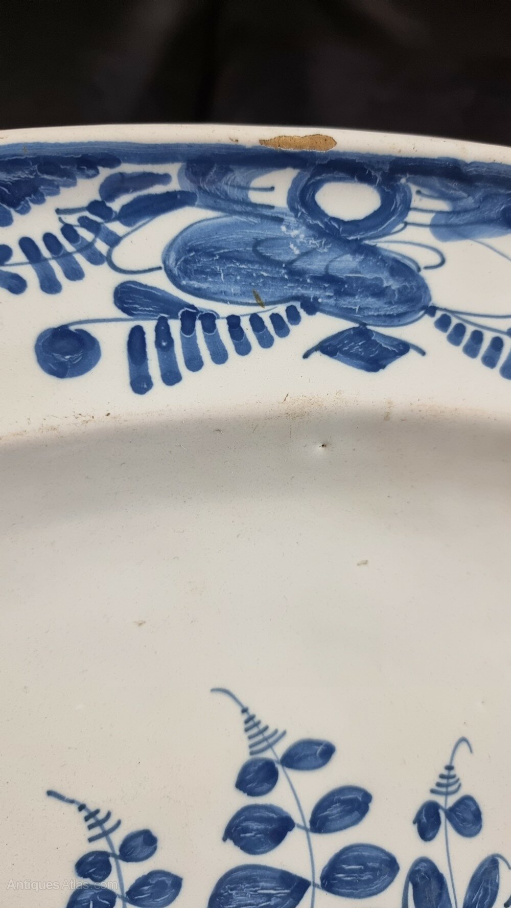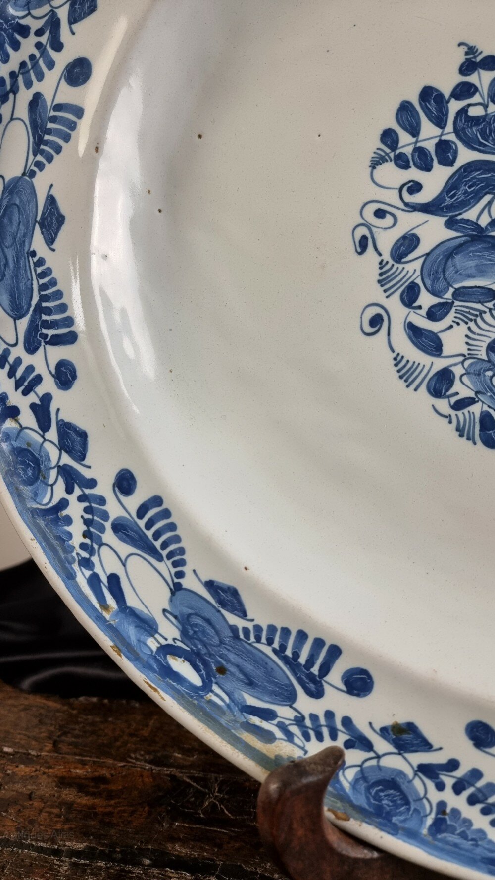 A large 18th century meat plate, a rare piece to find in such good condition. There is a small crack to one edge (pictured) and the usual chipping to the glaze around the edges, but otherwise in excellent conditon.