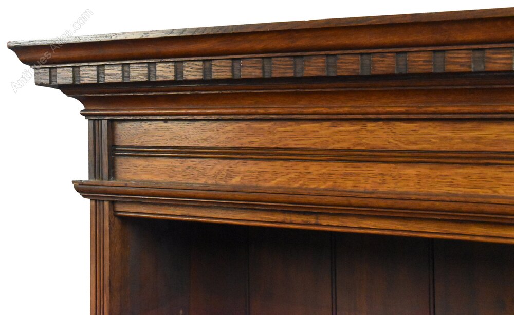 Antique Carved Oak Open Bookcase