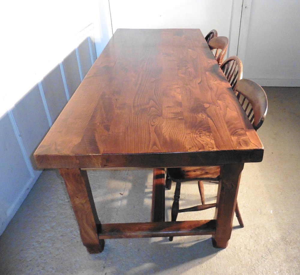 This is a typical piece of French Country antique furniture it is made in solid elm and is very heavy, it has a 2.5” thick plank top, sturdy shaped legs made from 4” thick wood with a long H stretcher for added strength.