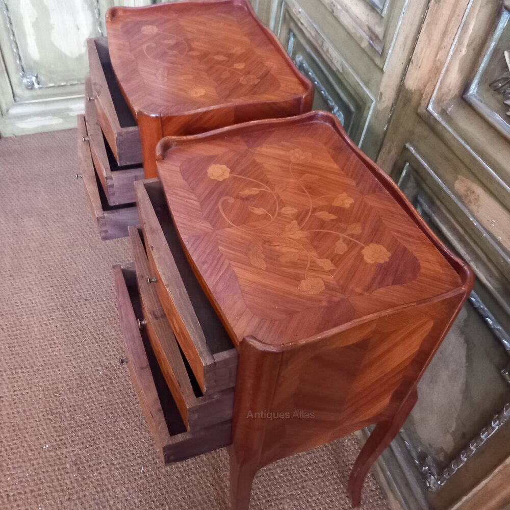 A good pair of inlaid marquetry chests , ideal as bedside chests or as occasional lamp stands around the home.