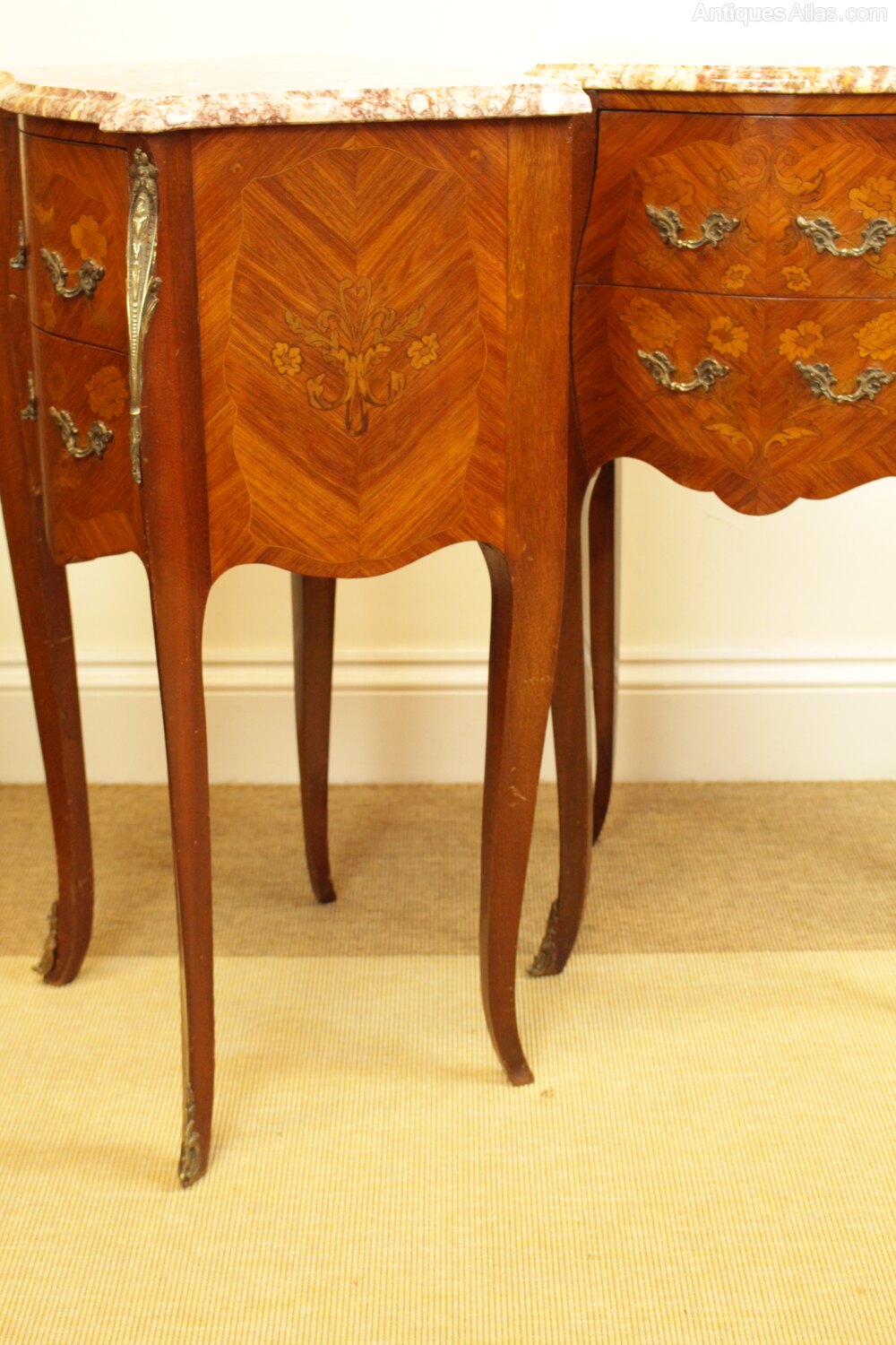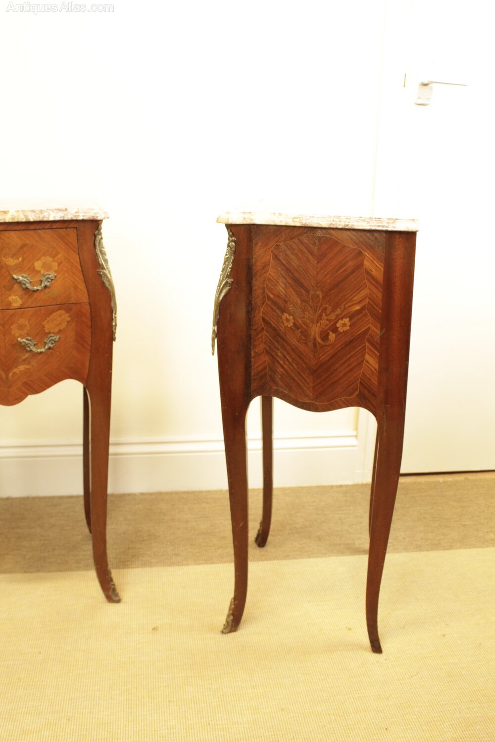 Pair French Marquetry Bedside Lamp Chest of Drawer