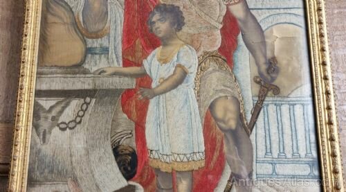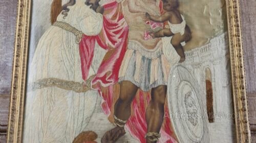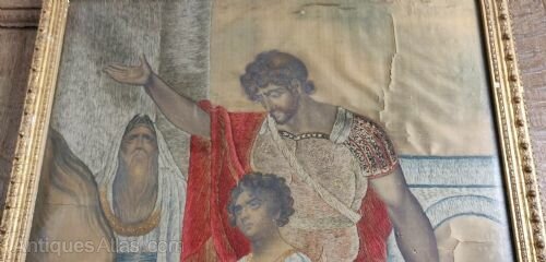 A lovely pair of 18th century silk work pictures depicting classical / biblical scenes.