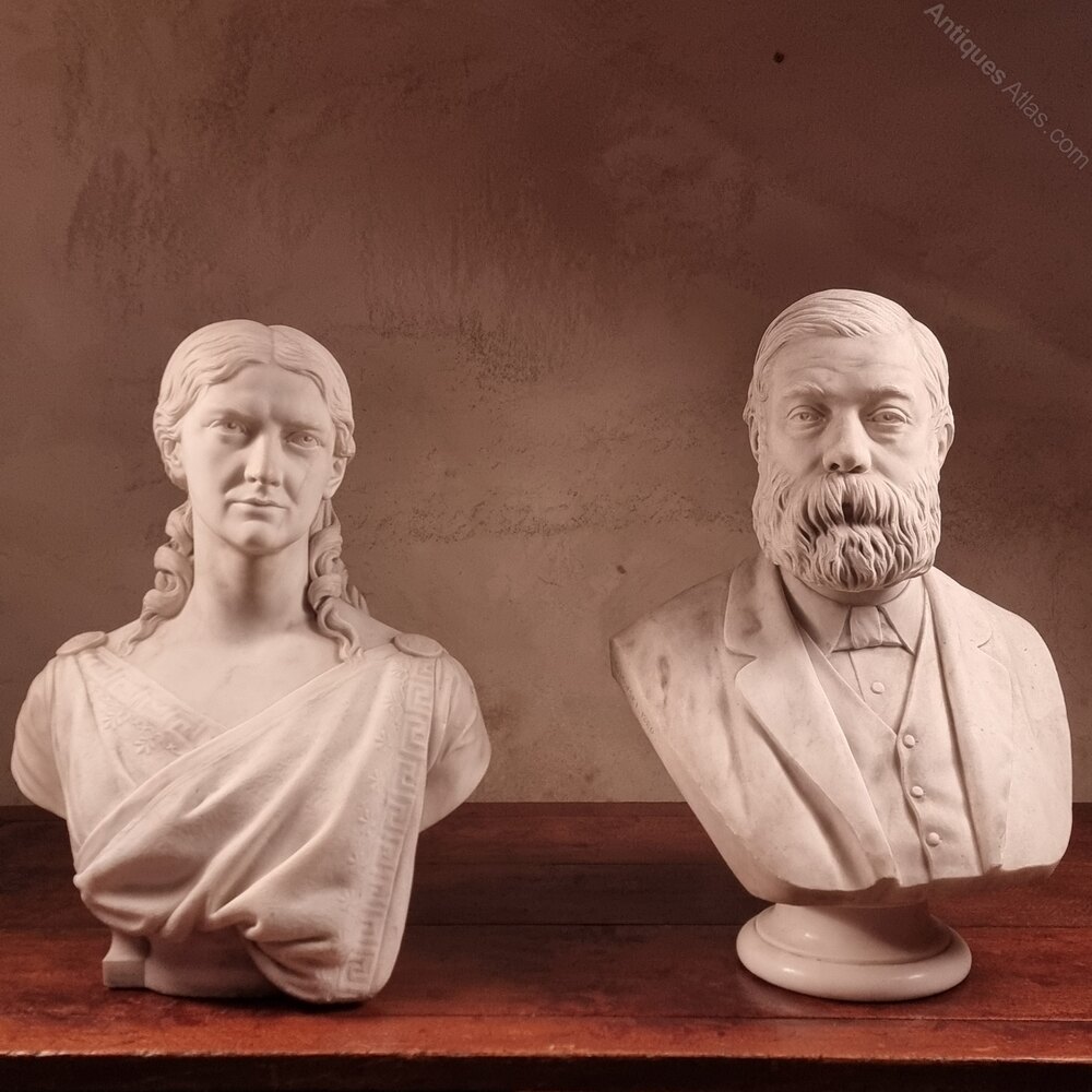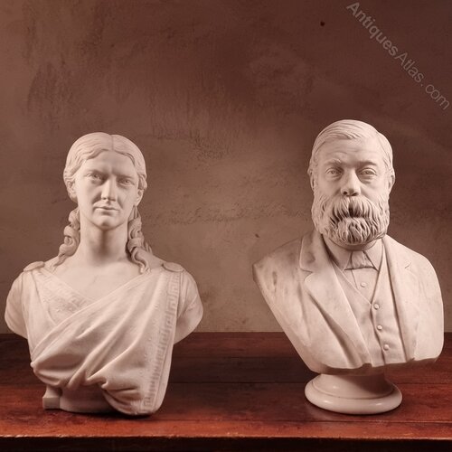 A large pair of beautifully carved marble busts depicting a man and woman, probably husband and wide perhaps. Both are life size busts and are of superb quality , and highlighting every intricate detail of both figures, and with the correct lighting the power of the figures comes to life and shows the true craftsmanship of the artist.