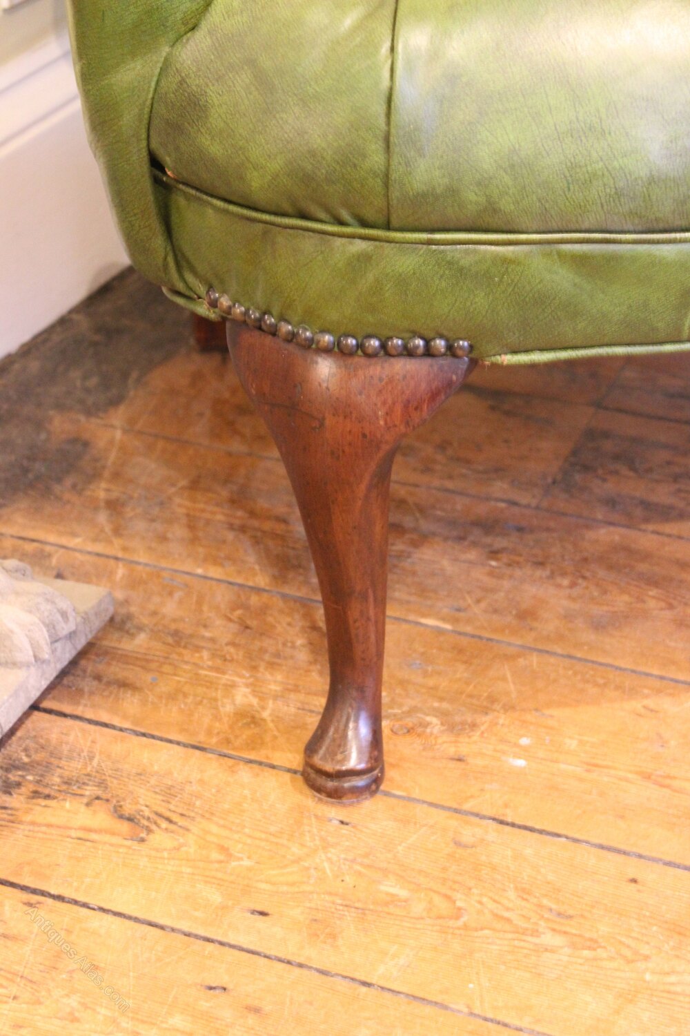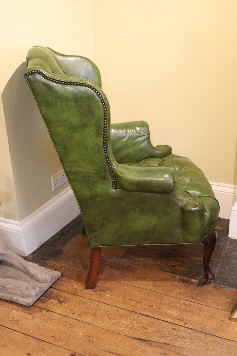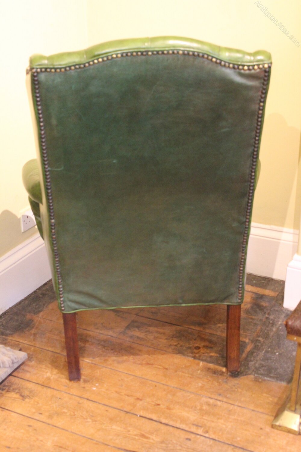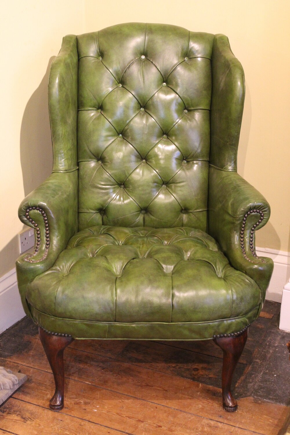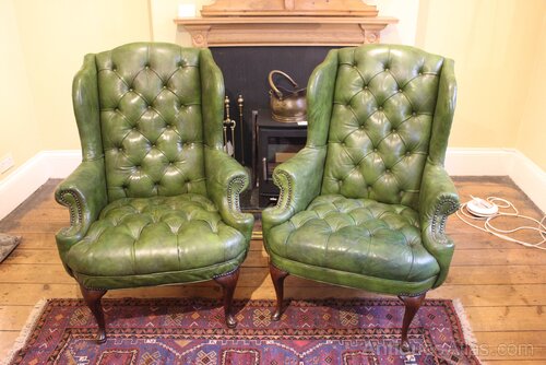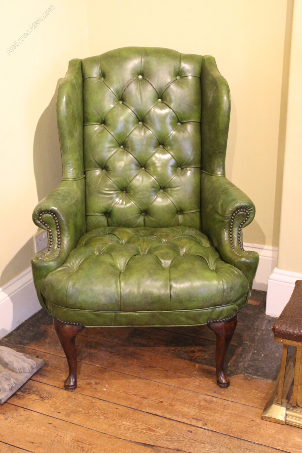 Pair of Antique Leather Barrel Back Wing Armchairs