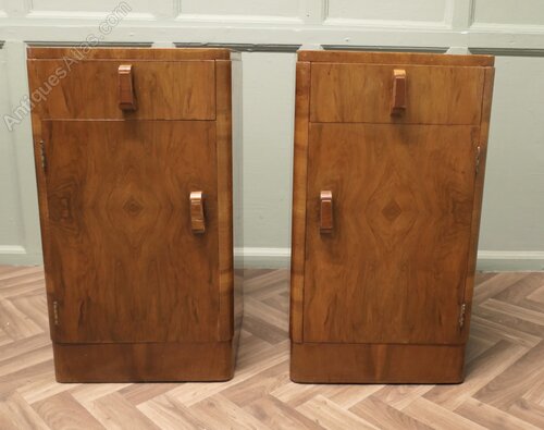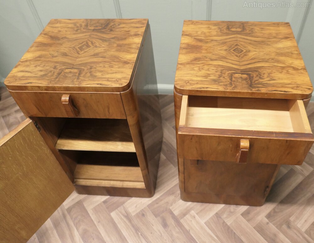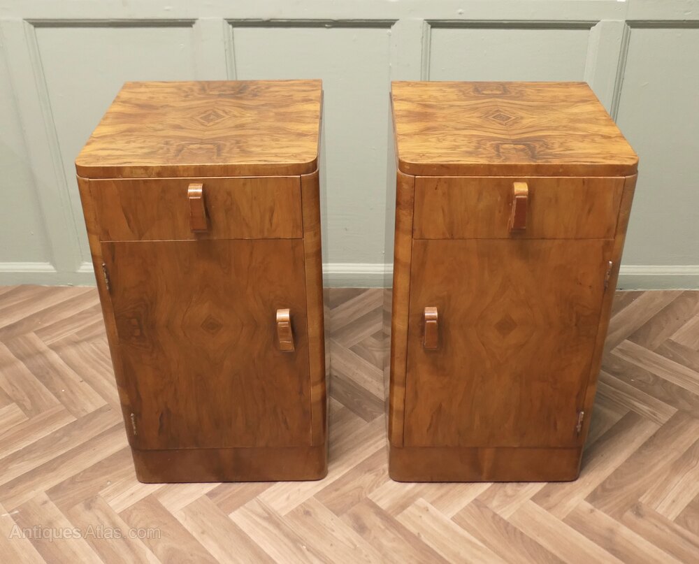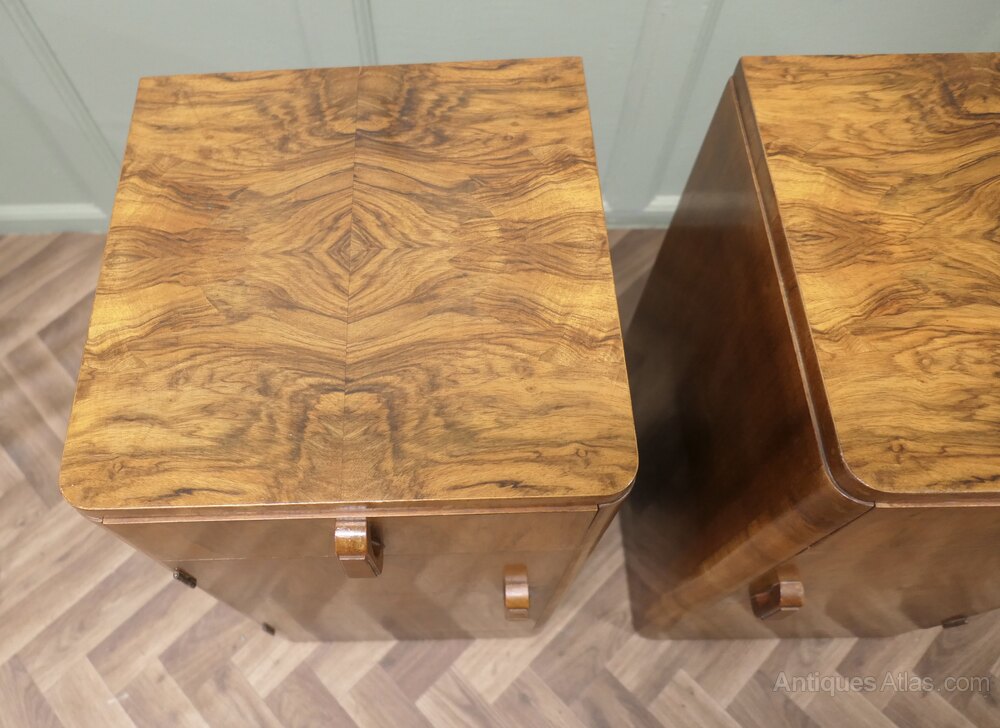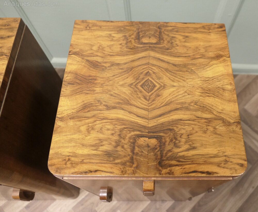 A Pair of Figured Walnut Art Deco Bedside Cabinets