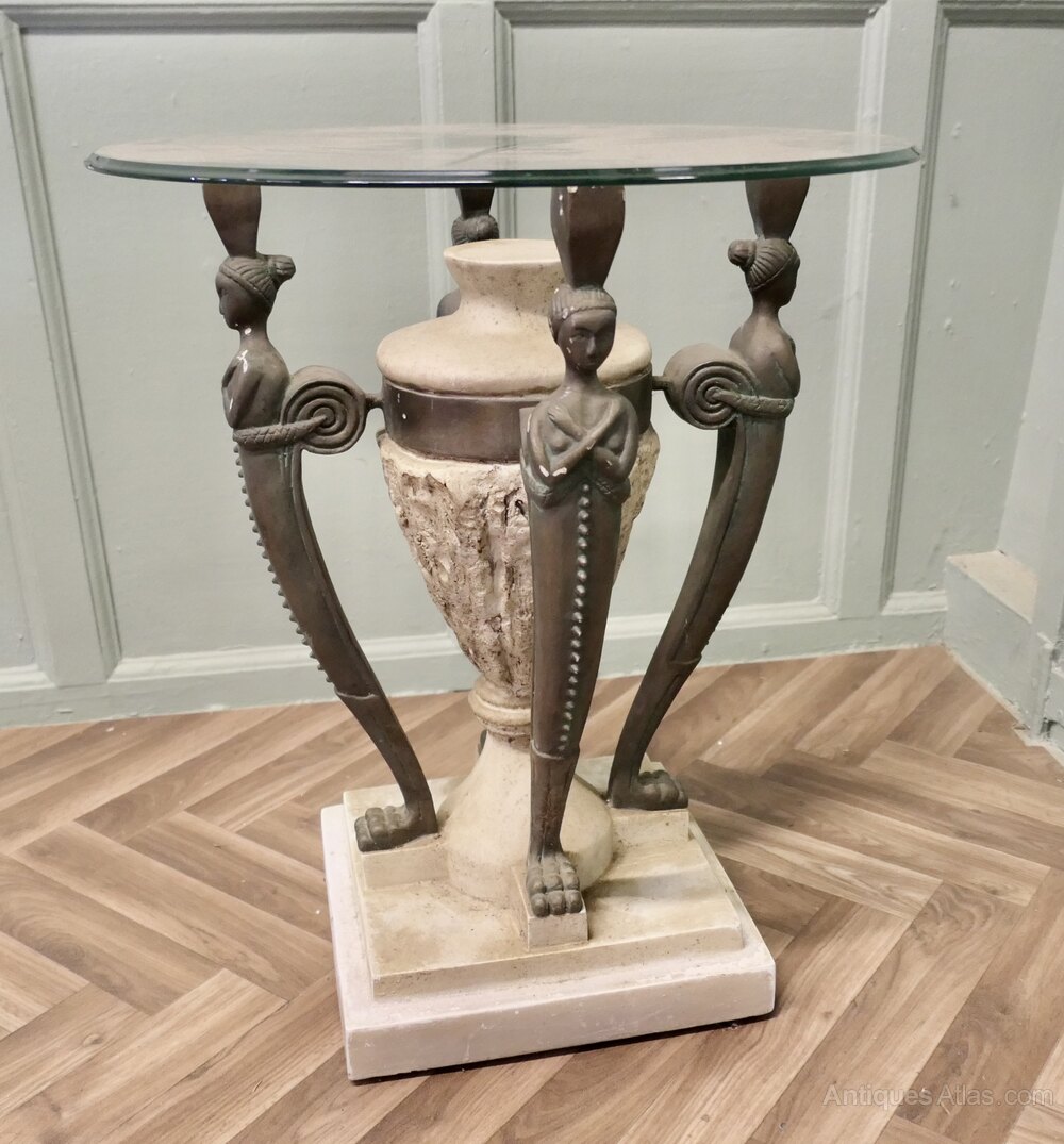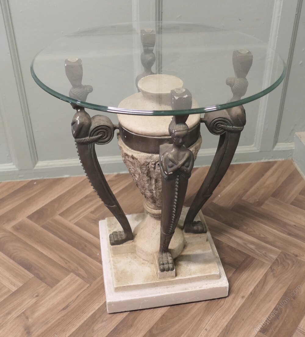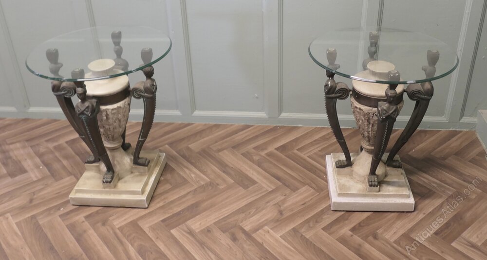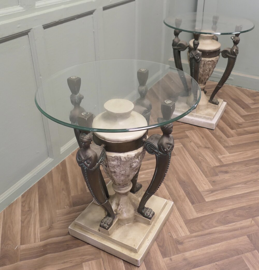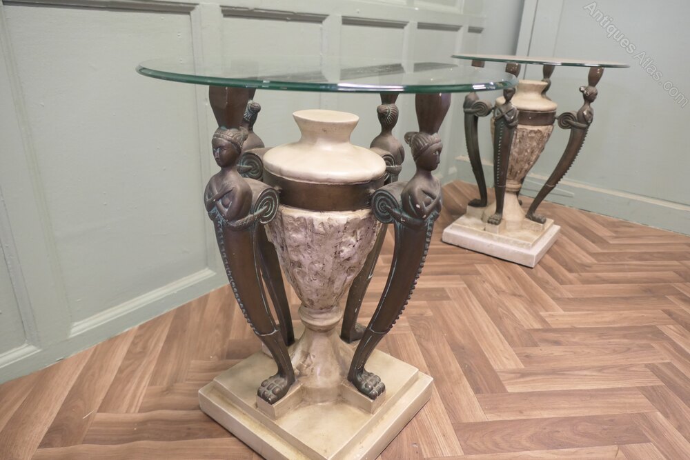 The tables are finished in simulated marble and bronze and is designed in a classical Roman design
