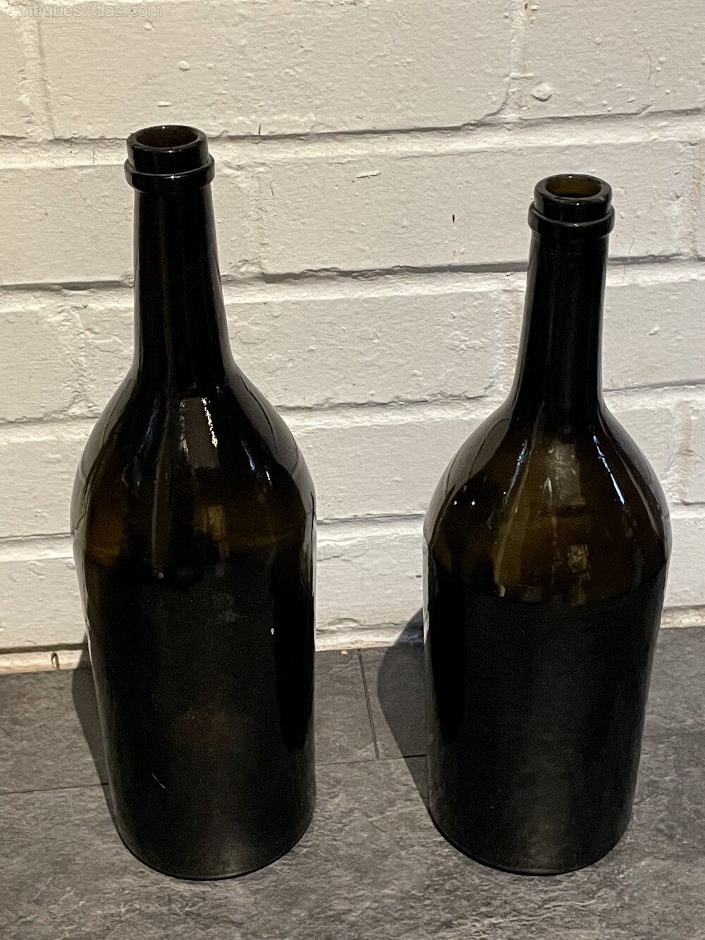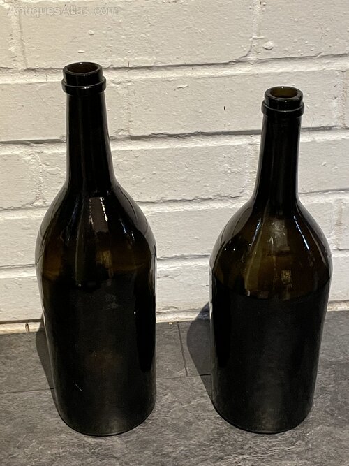 A pair of early 19th century part blown bottles ,quite possibly champagne bottles .Bottle 1is 360mm tall x107mm wide . Bottle 2 340mm tall x107 mm wide