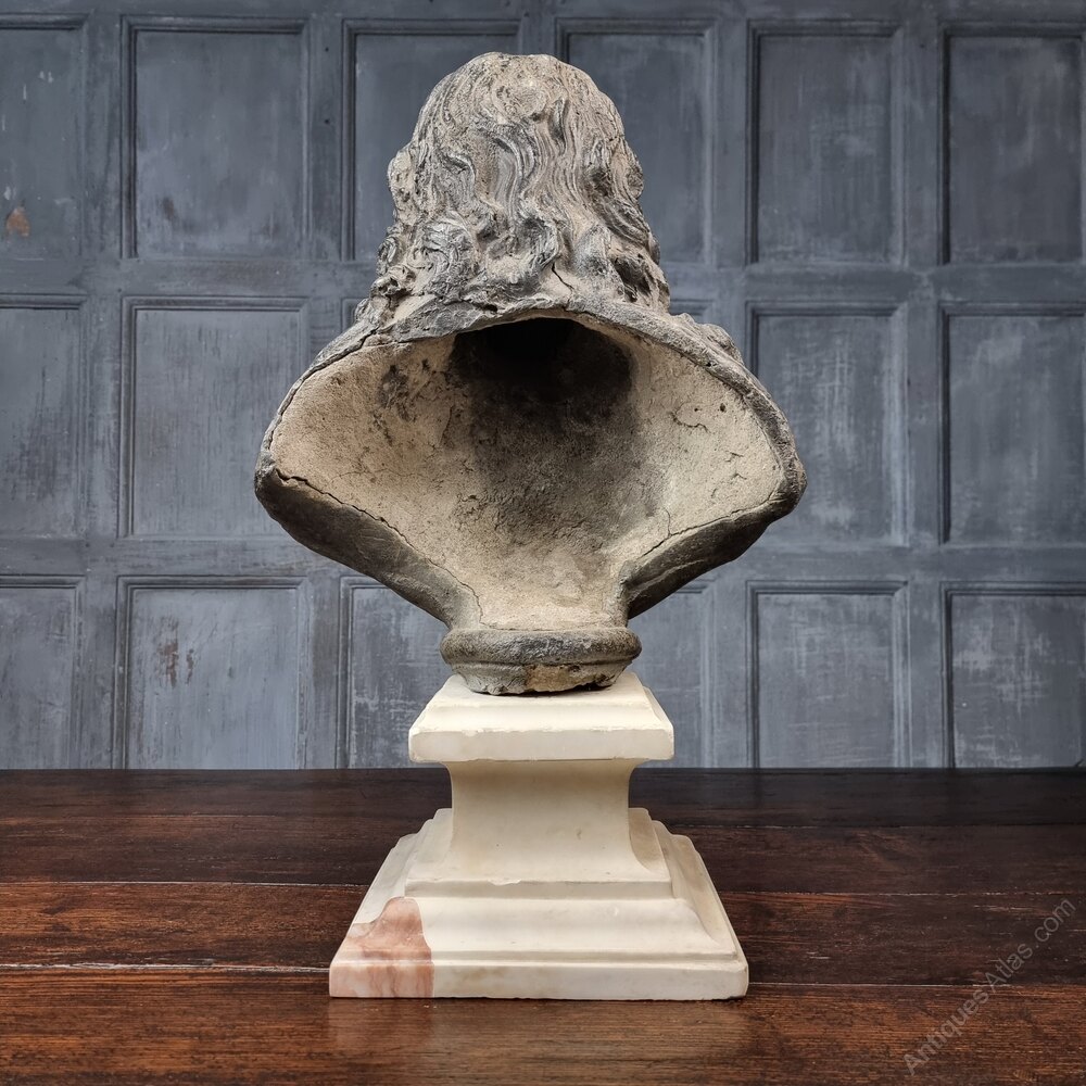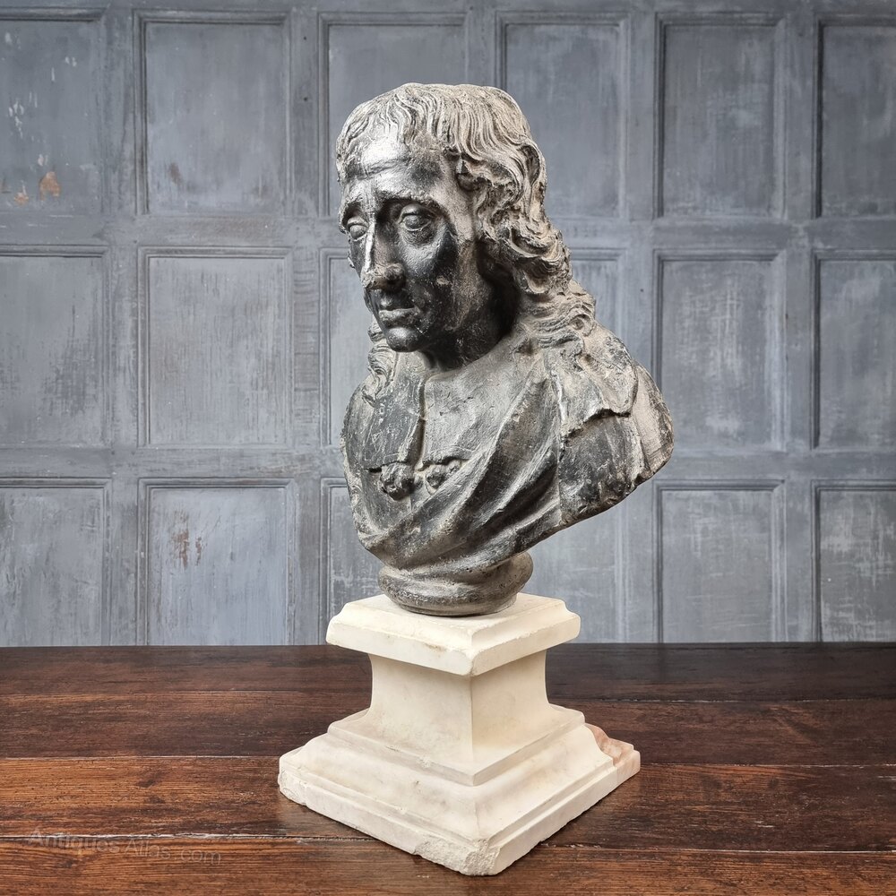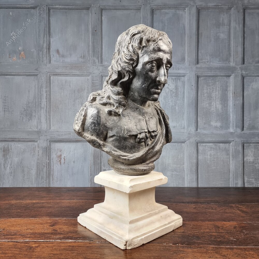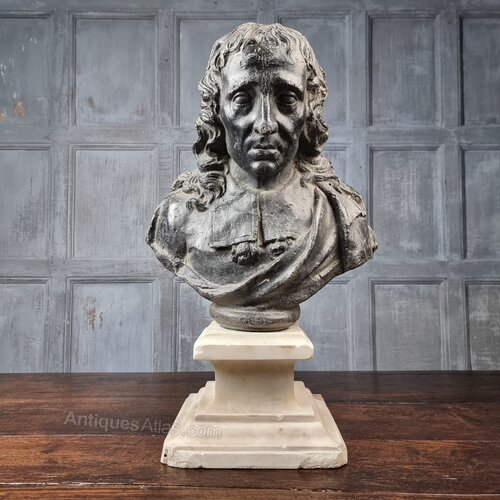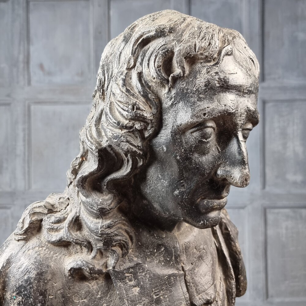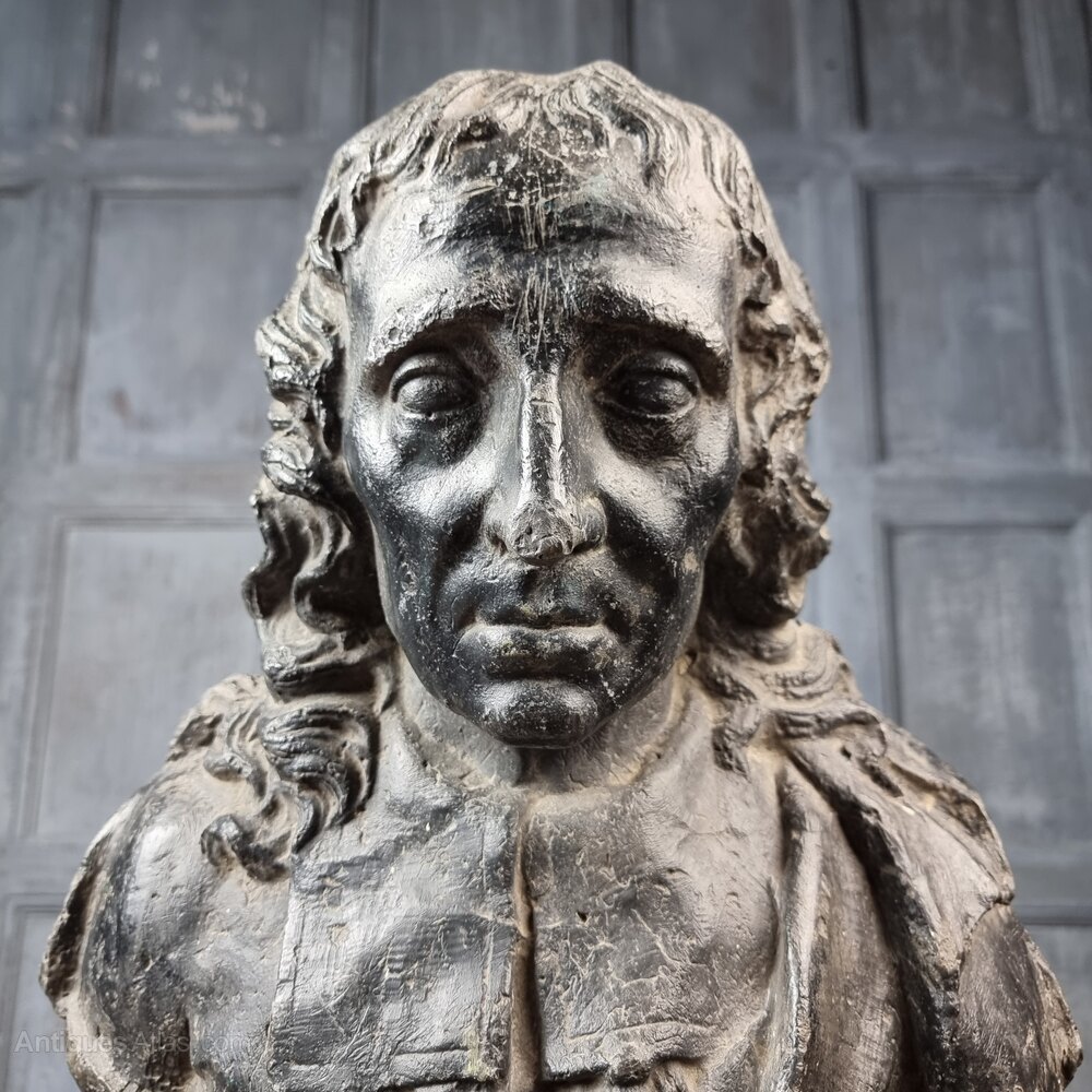 A rare lead bust of the famous 17th century poet Sir John Milton 1608 - 1674.