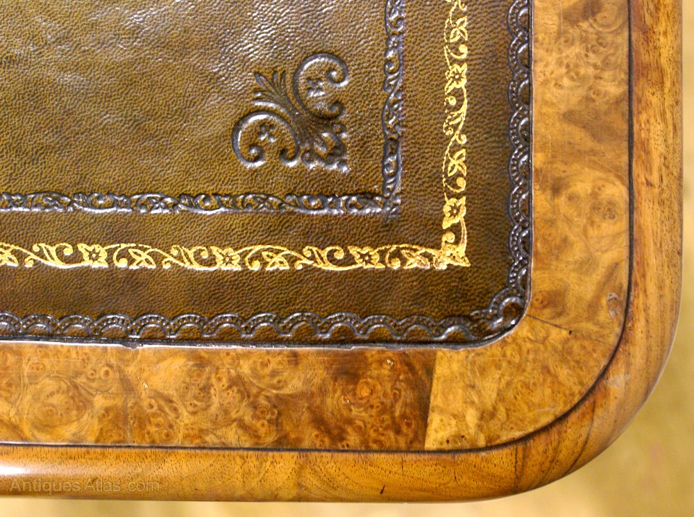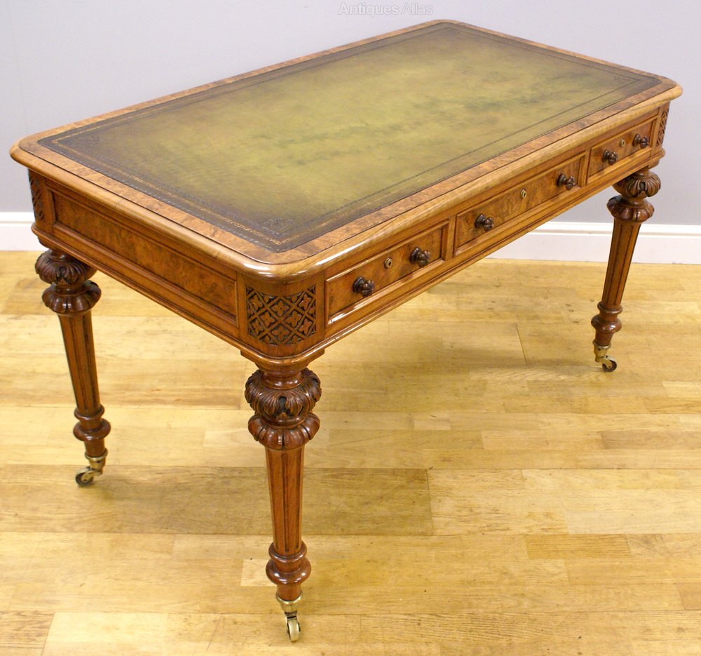 Antique Victorian Walnut Leather Top Pedestal Desk