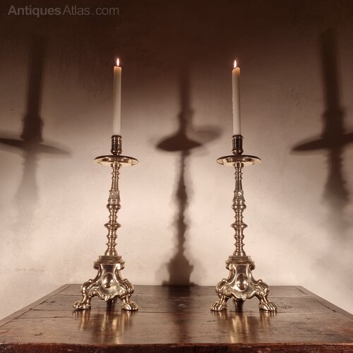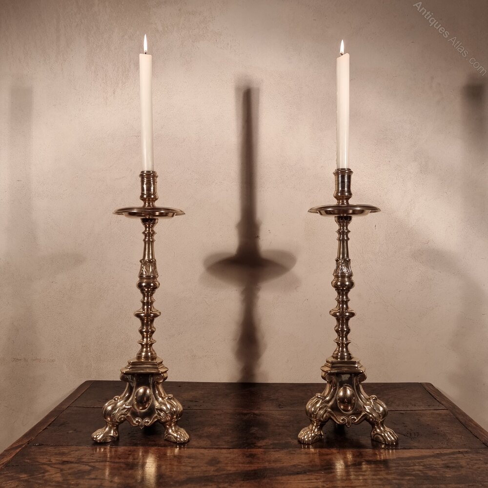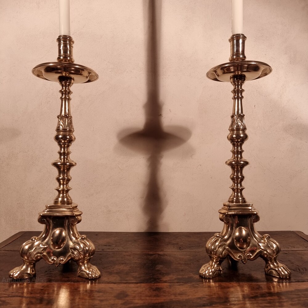 A Superb Pair Of 19th Century Brass Candlesticks.