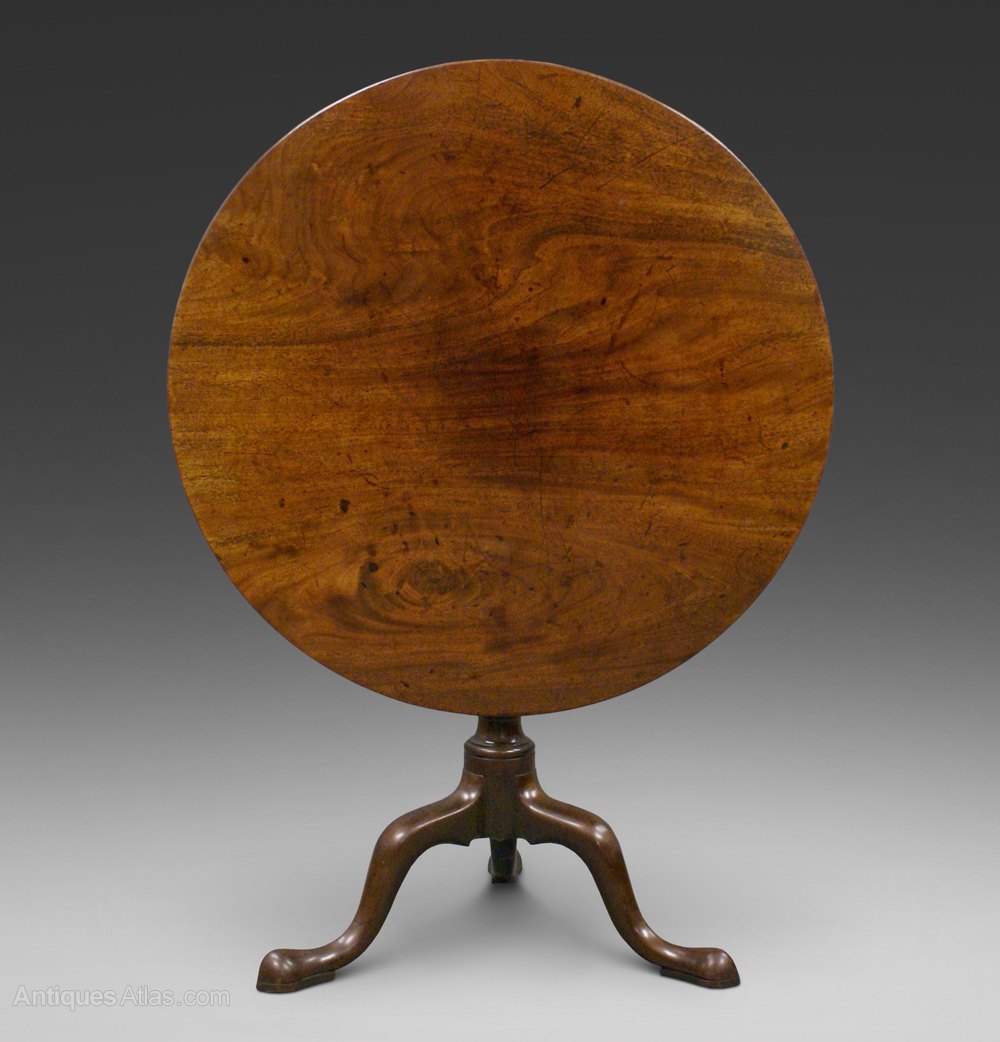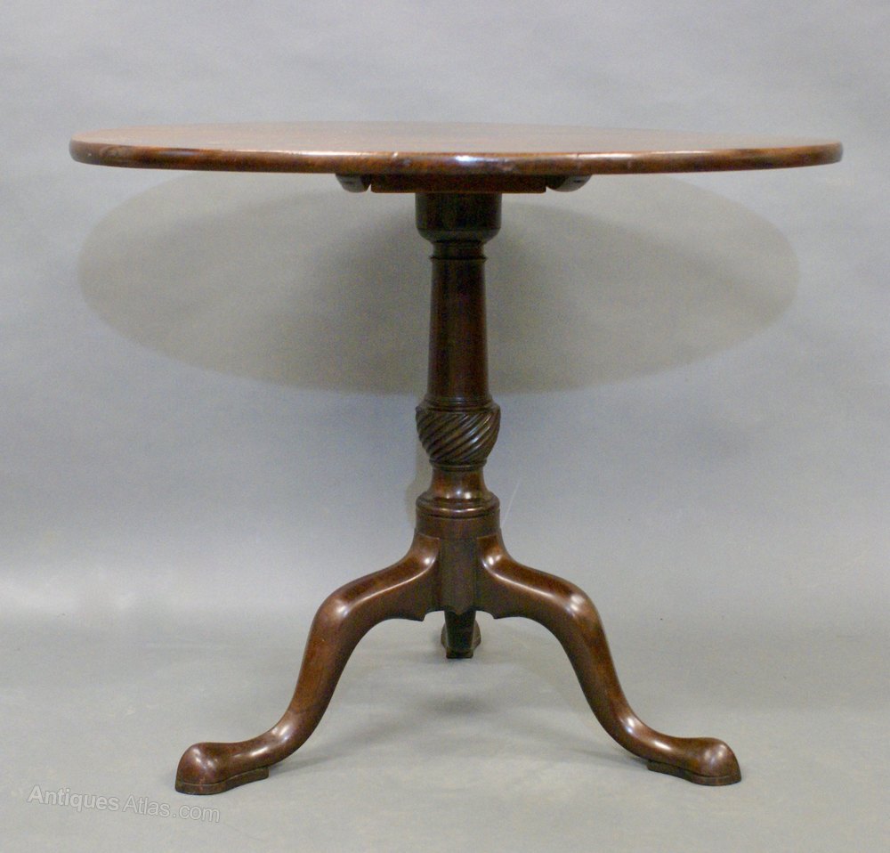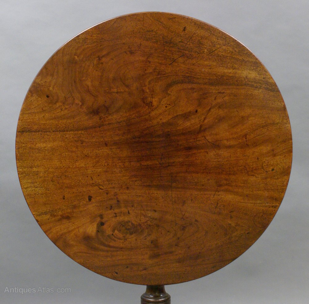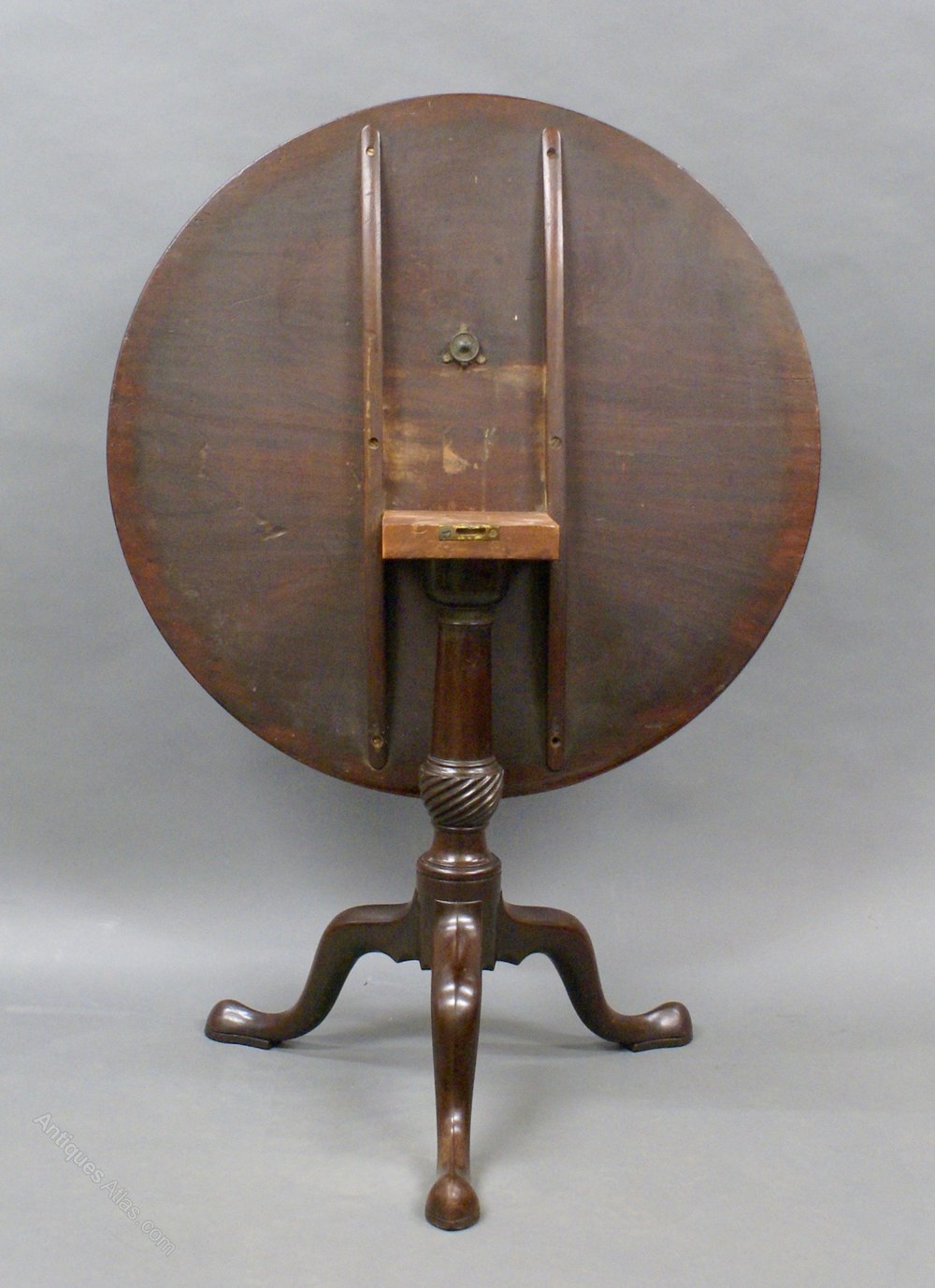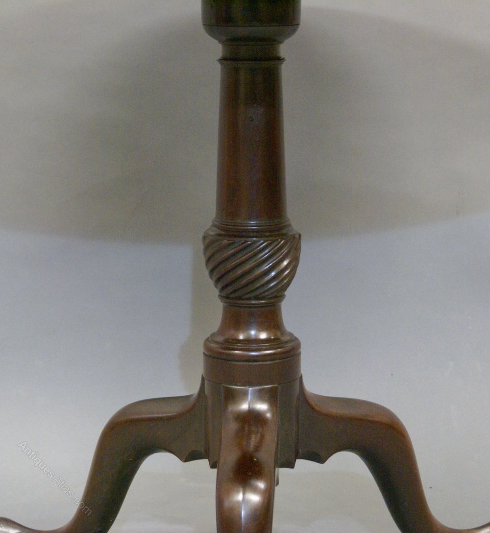A superior quality George III tripod table. In dense Cuban mahogany, with a one piece top and raised on a tripod base with cabriole legs, pad feet, and a twisted and fluted vase column. The table retains its original bearers, block and clip and is of a very good colour and original patina. 695mm high and 840mm diameter. Circa 1780.
