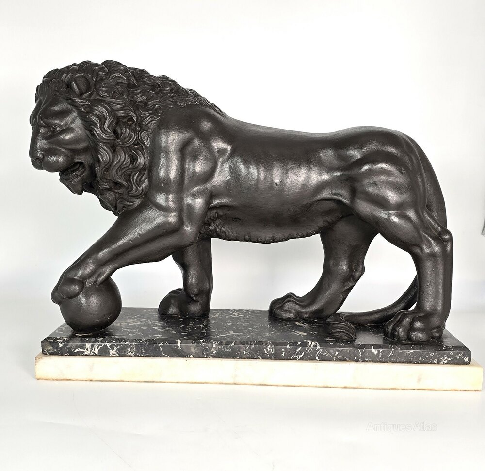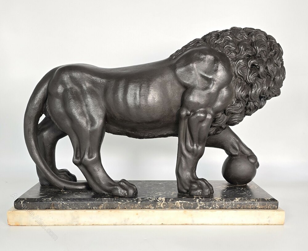 A very large classical sculpture of a Medici lion