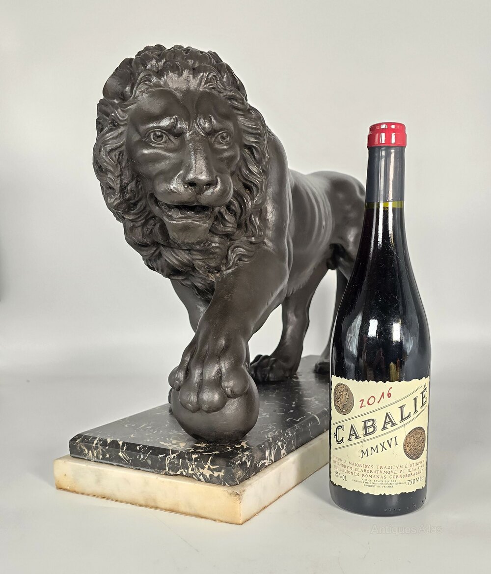 This superb mid 19th century very large classical Roman Medici lion is beautifully detailed and cast in solid plaster, which is hand finished with a bronze like patina.