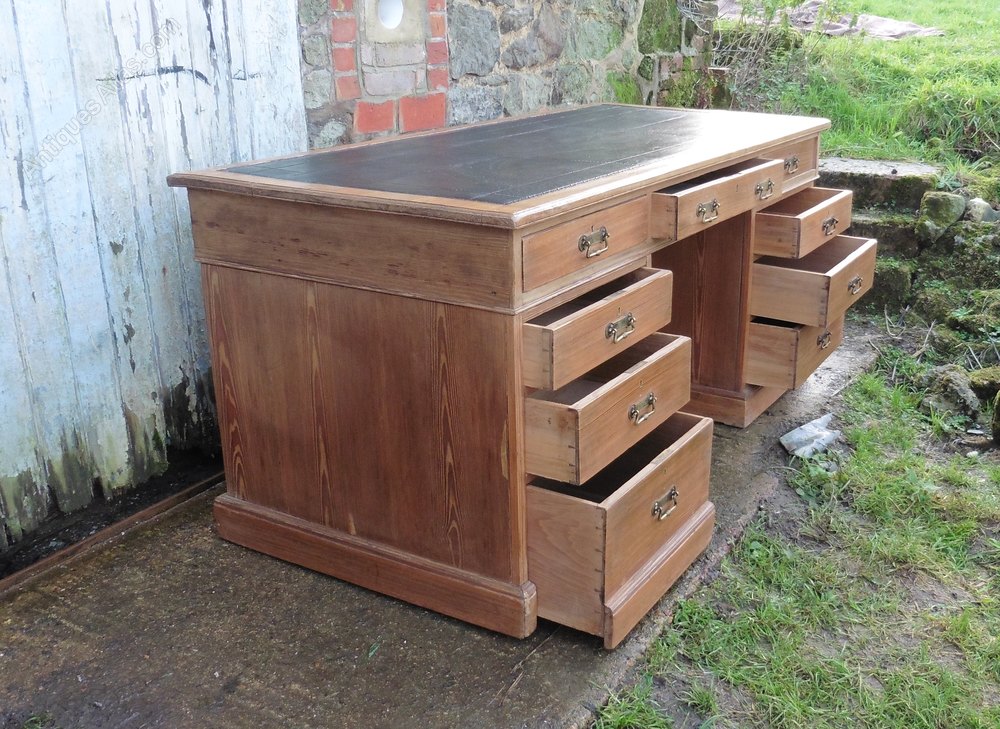 A Very Large Victorian Pitch Pine Desk, by Heals
