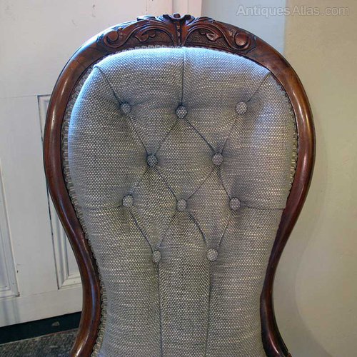 We have had the chair re-covered in a textured,woven fabric with pearl, mossy shades of green/grey.